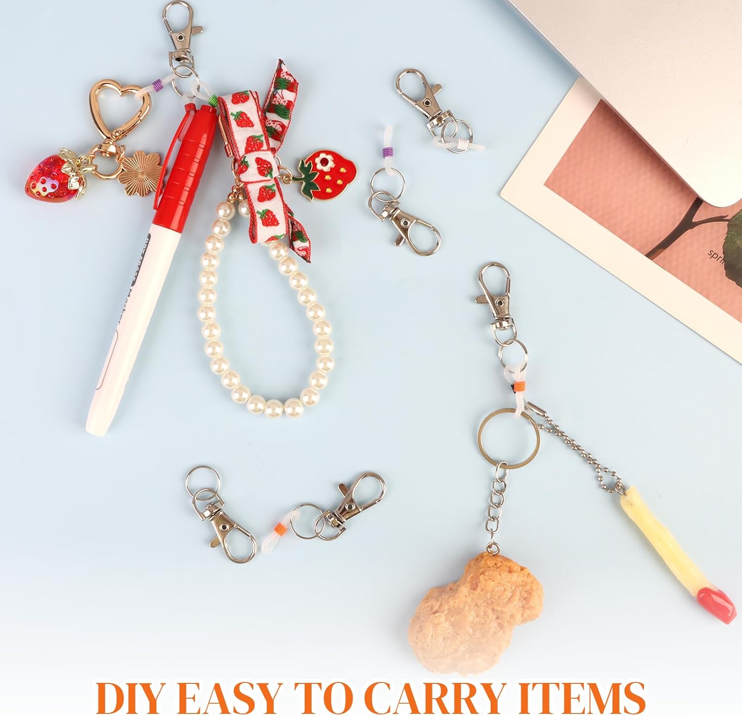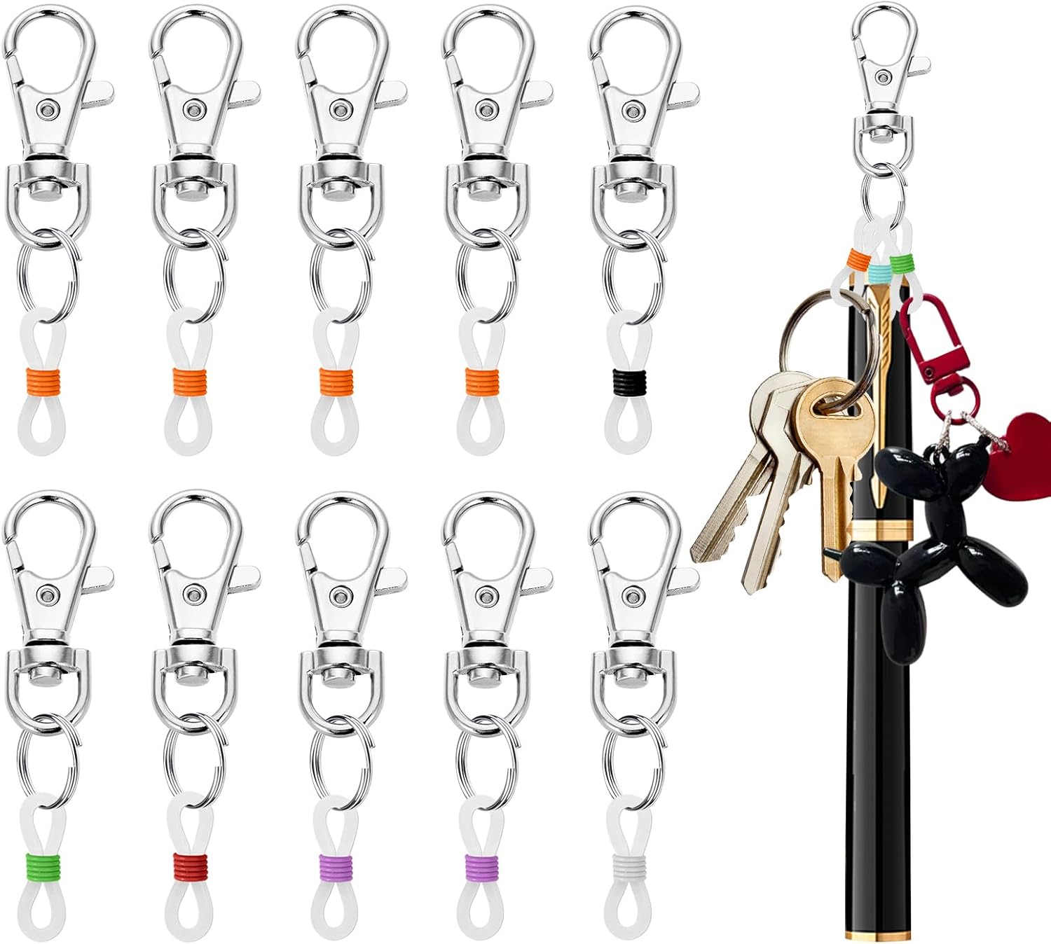 - Colorful and Customizable DIY Matching: Customize your clips by using silicone rings on the lobster clasp to hold multiple pens or other items simultaneously, catering to various needs. This flexibility adds a stylish touch while keeping your accessories well-organized and easily accessible