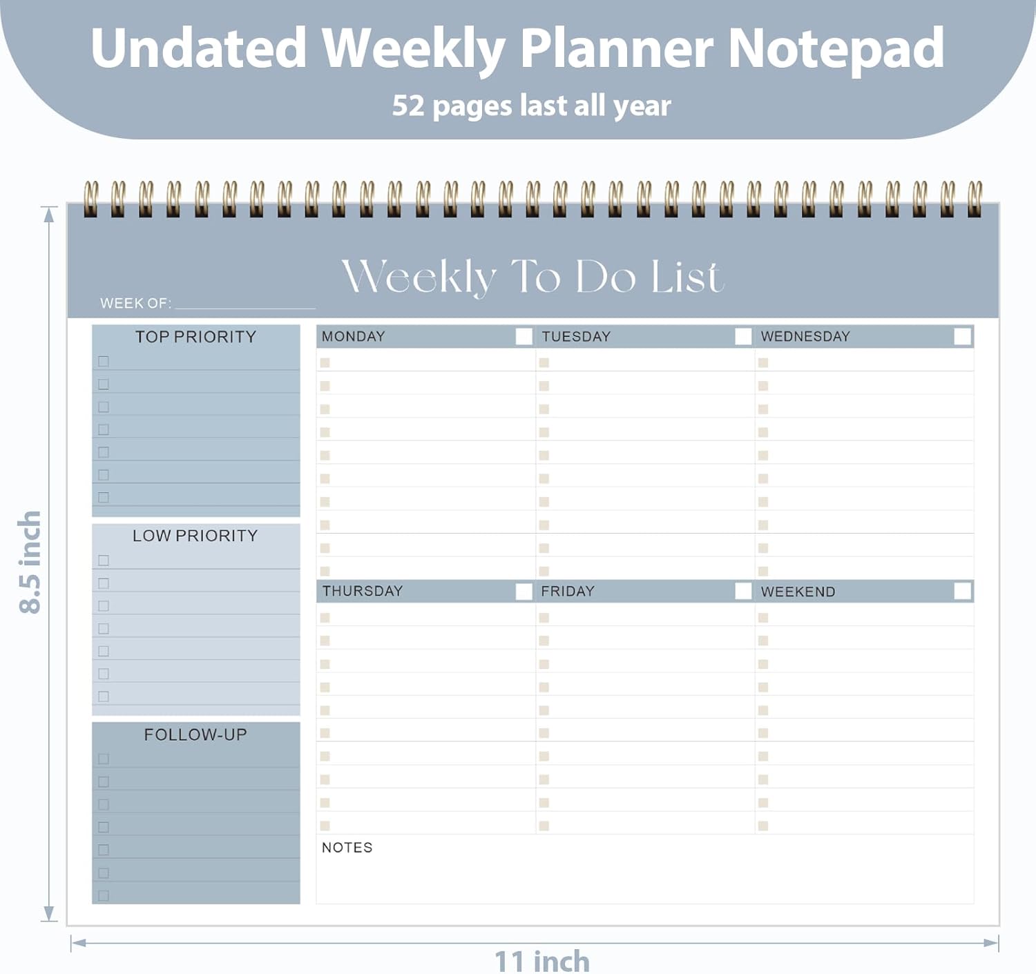 Weekly To Do List Notepad, Undated Planner with 52 Sheets (8.5''x11''), Desk Weekly Planner for Women & Man, Home School & Work