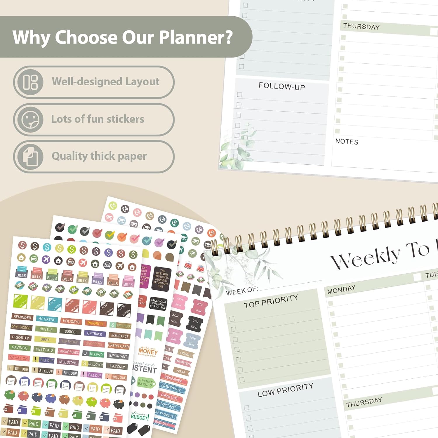 Weekly To Do List Notepad, Undated Planner with 52 Sheets (8.5''x11''), Desk Weekly Planner for Women & Man, Home School & Work