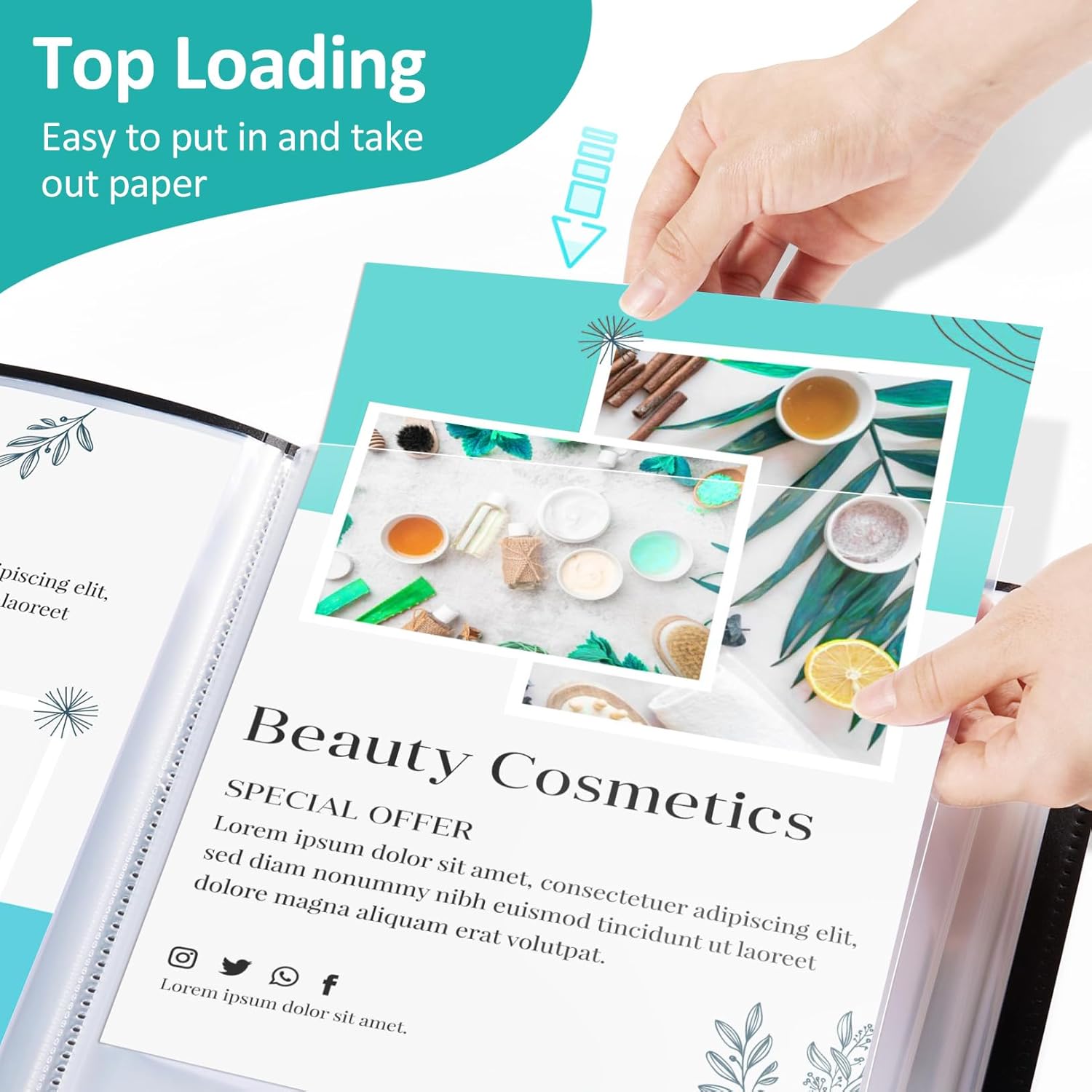 - High Transparency & Customisable Spine: Our presentation book with crystal clear PP sheet protectors offers complete transparency for checking through and organizing. You can label and identify your watercolors, sketches, scrapbook, art pieces, sheet music, certificates, and other projects by customizing the reversible spine insert.