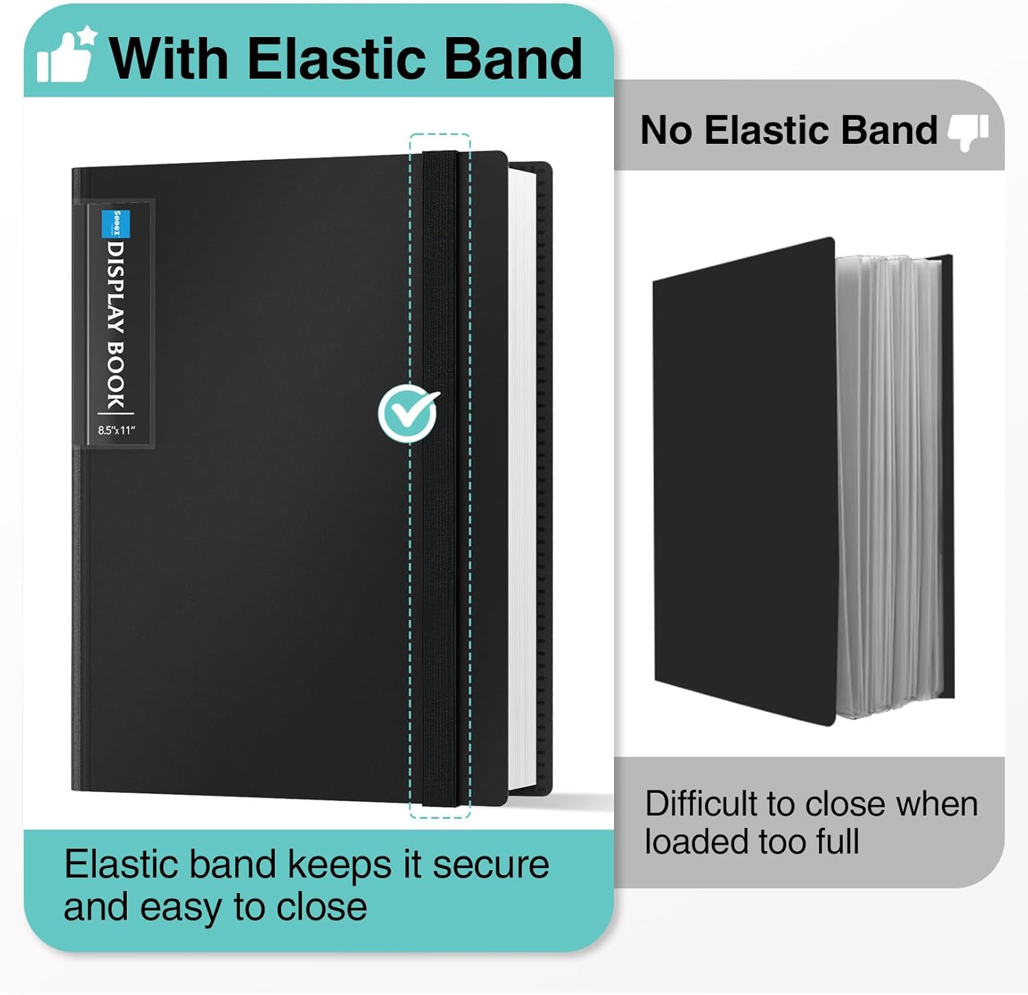 Sooez 4 Pack 72 Pocket Binder with Plastic Sleeves & Elastic Band, Large Capacity 8.5x11 Presentation Book Display 144 Pages, Art Portfolio Document Folder with Clear Sheet Protectors
