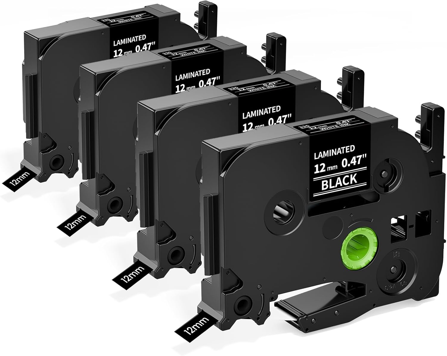 Airmall Label Maker Tape Black Replacement for Brother Ptouch Tape 12mm 0.47 White on Black Tze-335 Tze335 TZe TZ 12mm 0.47 Laminated for Brother PT-D210 PT-D220 PT-H110 PT-D400 PT-D600, 4-Pack
