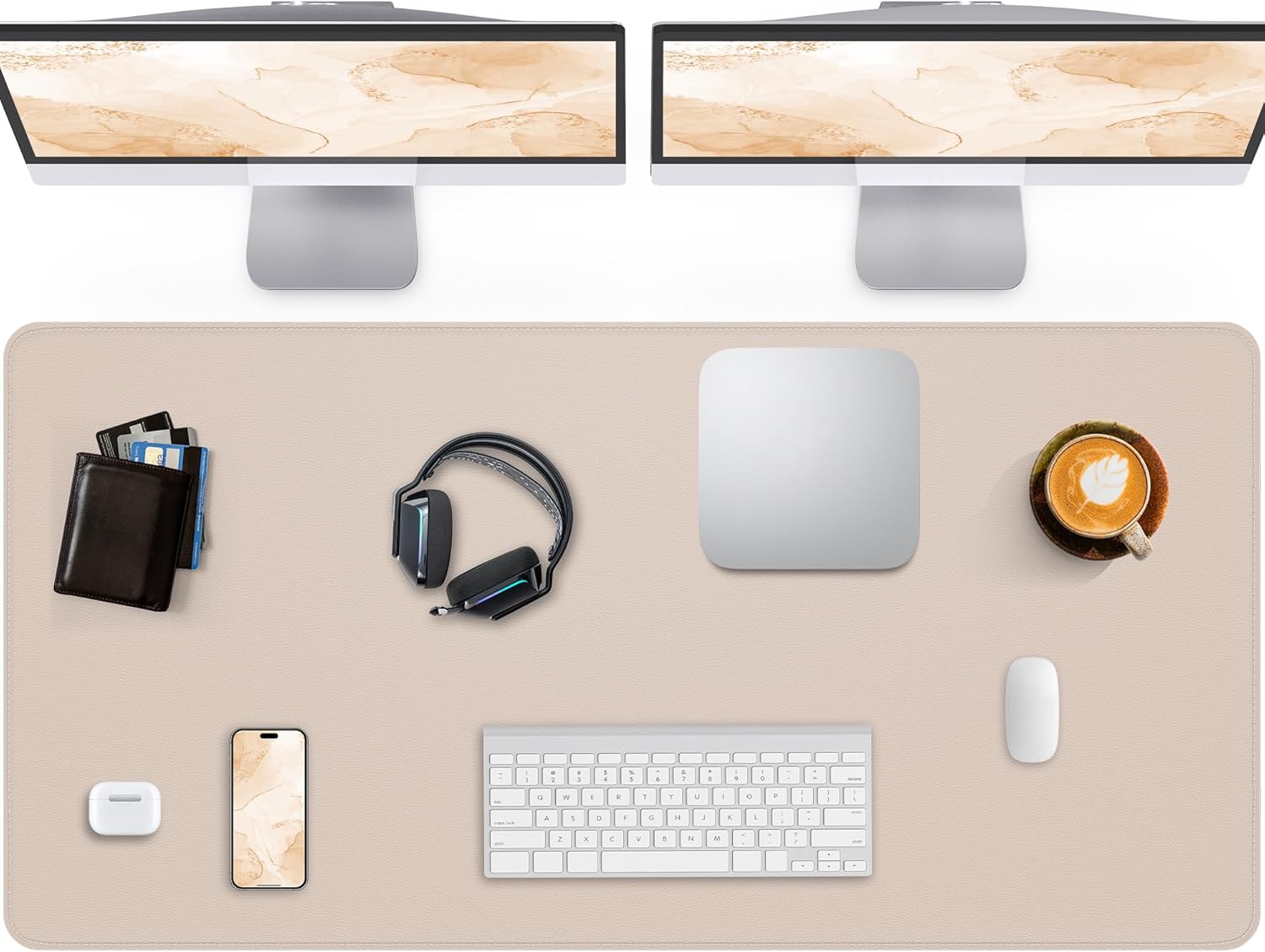 Extra Large Desk Pad Mat - Waterproof Mouse Pad & Desk Protector, Non-Slip XXL PU Leather Gaming Mat for Keyboard/Mouse, Stitched Edge with Ergonomic Support, 47.2"x23.6" (Beige)