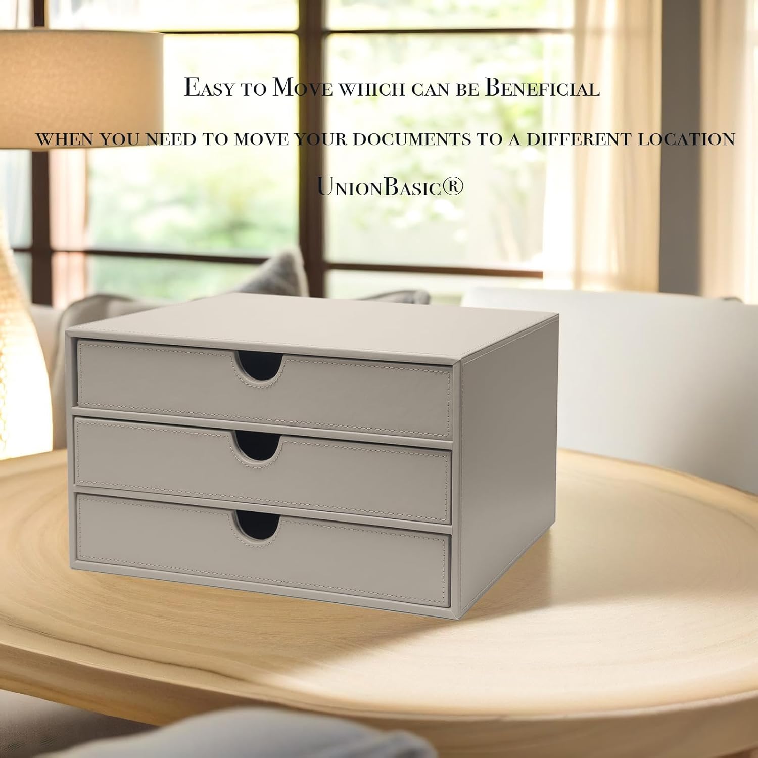 UnionBasic Document Organizer, 3-Drawer File Cabinet Document Storage Box, Office Desktop Filing Organizer, Feather Gray