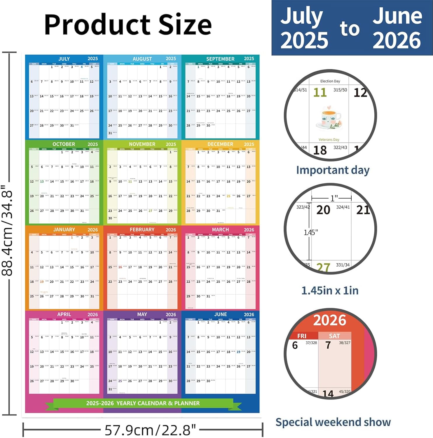 2025-2026 Wall Calendar 34.8" x 22.8" Large Vertical Yearly Wall Hanging Calenda with Julian Date from July 2025 to June 2026 Thick Paper Calendar 12 Month Annual Planner for Office Fridge(Colorful)