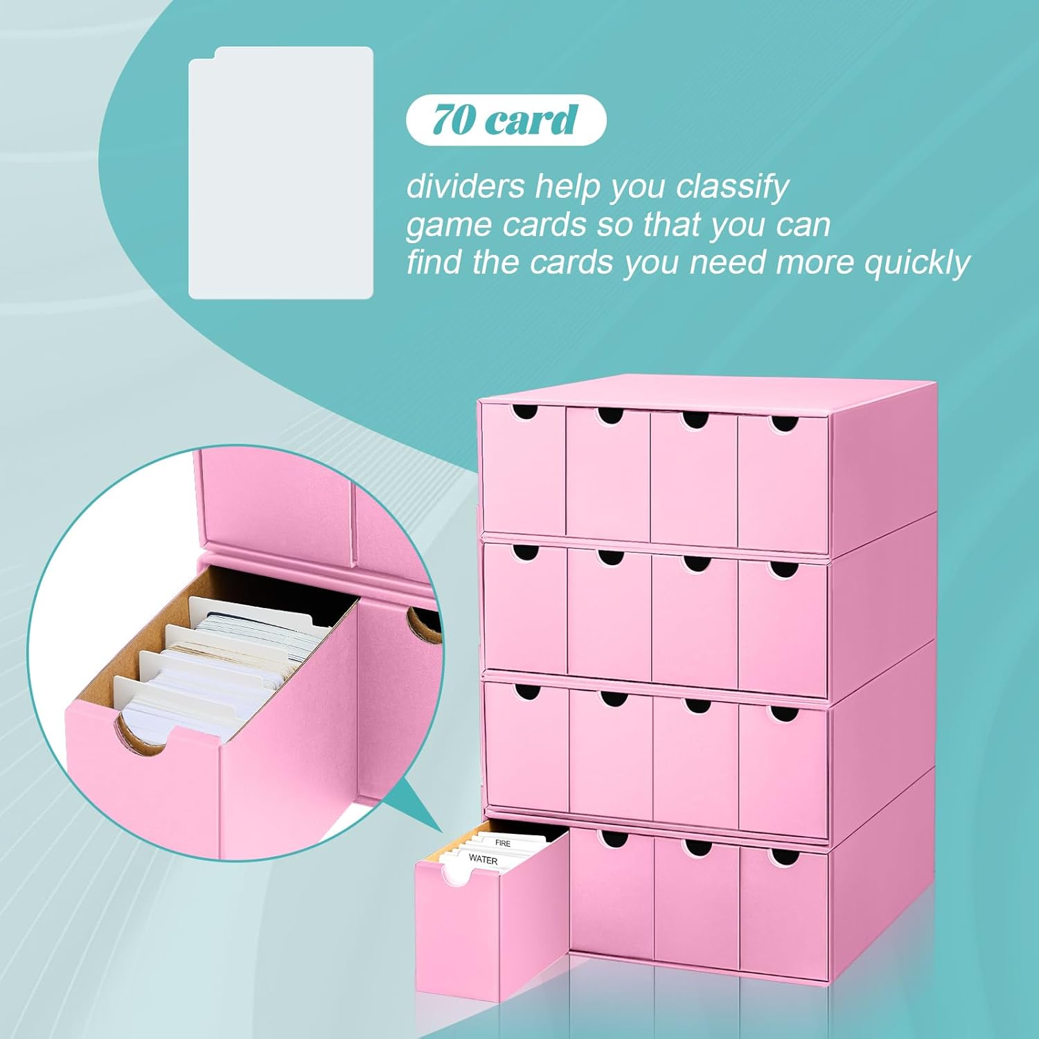 Cholemy Trading Card Storage Box 15000+ with 70 Cardboard Storage Divider, Label Sticker for Collection Compatible with TCG, Sport Cards(4 Row, 4 in A Row,Pink)