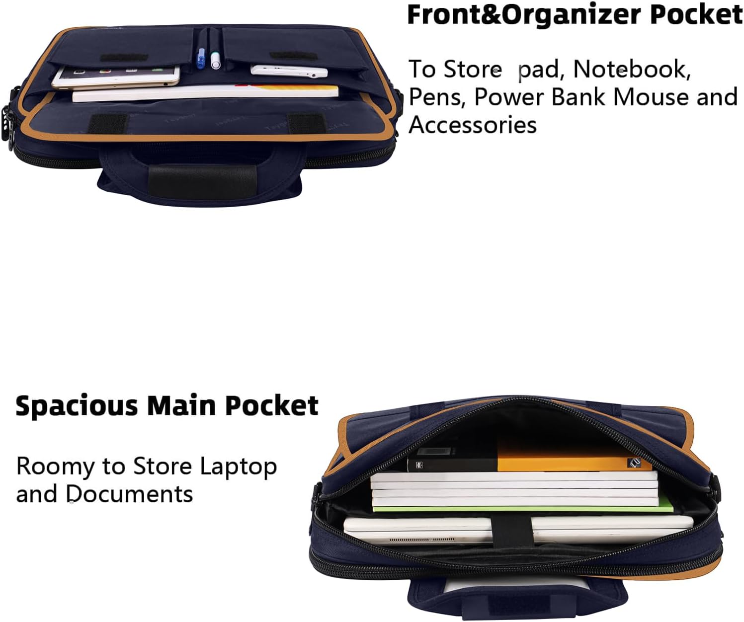 - Smart Multi-Compartment Organizer:Designed for high efficiency, this briefcases for men features 2 exterior pouches, 2 pencil holders, and multiple inner pockets for your daily business essentials. A spacious main zipper compartment includes a padded sleeve that fits most 15" to 15.6" laptops. Keep chargers, cables, notebooks, and personal items neatly organized. The back invisible zipper pocket offers extra security for your valuables