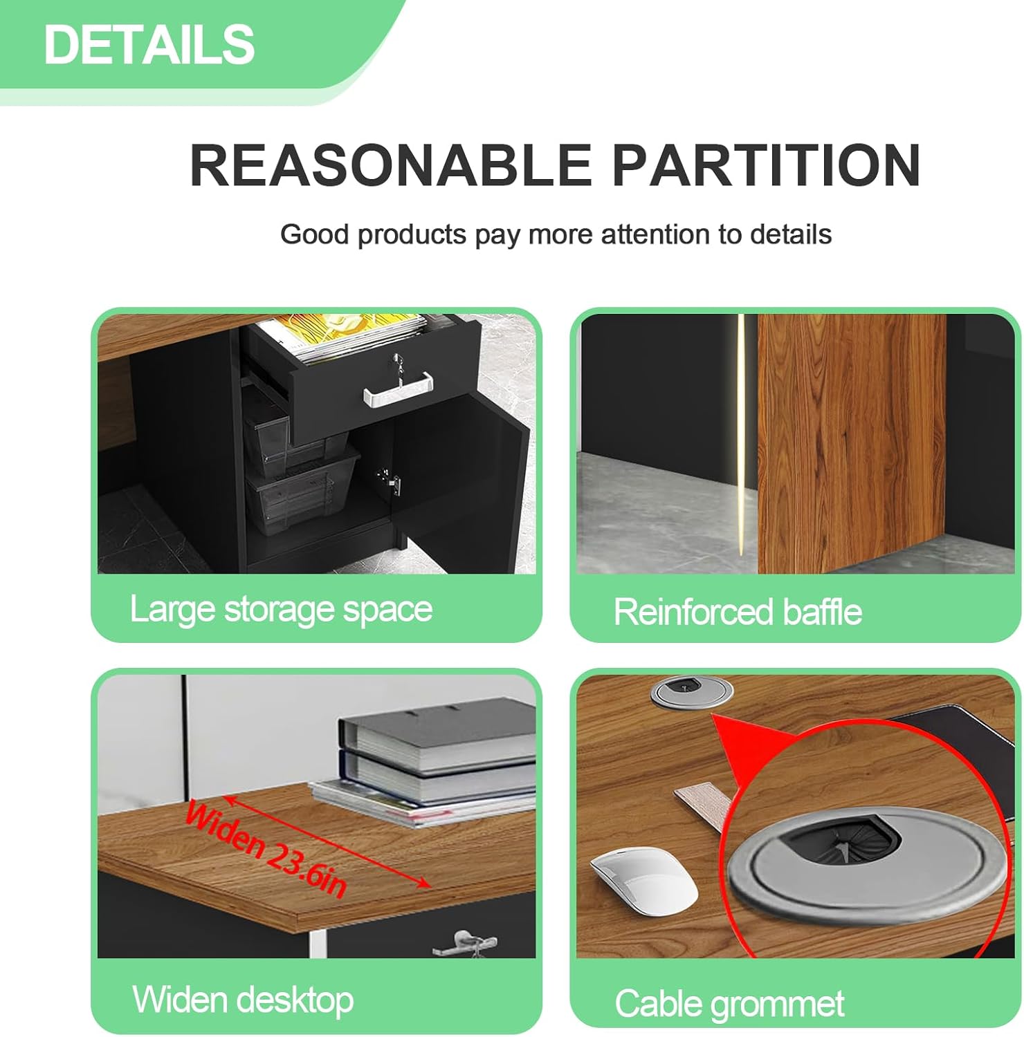 - Privacy Design - We attach great importance to your privacy and property security. The receptionist desk with counter retail counter checkout is equipped with lockable drawer, cabinet with door and high baffle, providing ample space for privacy.