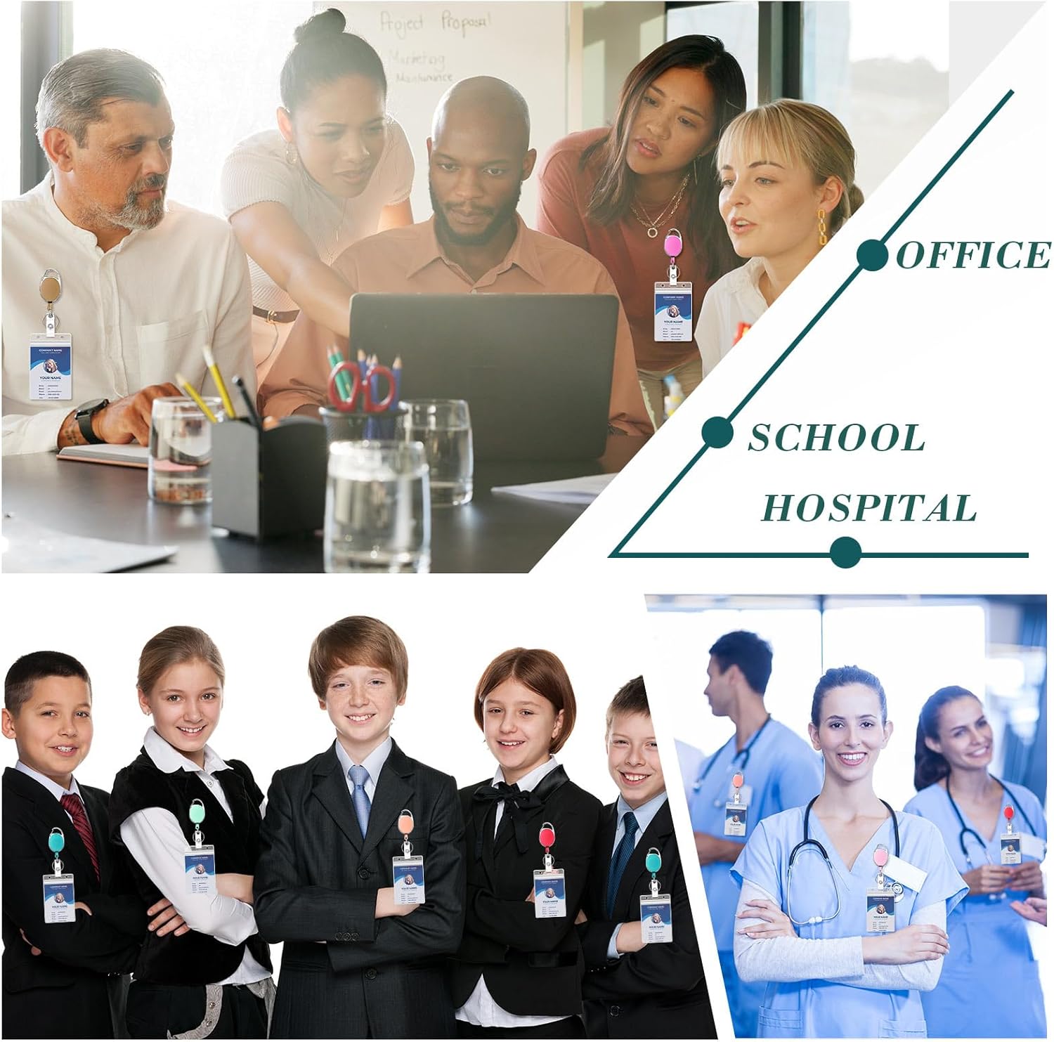 - Package Includes: you will receive 60 pieces of heavy duty retractable badge reels and 60 pieces of vertical clear ID card holder, enough quantity for your replacement needs, and you can share them with your friends, family, and colleagues