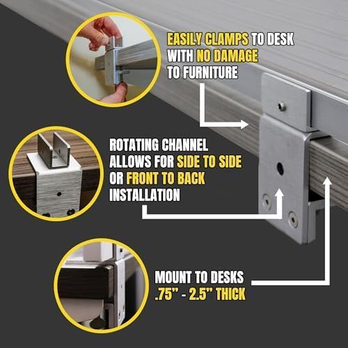 - CUSTOM SIZES AVAILABLE: Comes in various polycarbonate desk privacy panel color options. Adjustable mounts work on tables from 3/4″ to 2.5″ thick; Install or remove with no damage to tables in less than 5 mins. Available sizes in 3 heights and 8 widths.