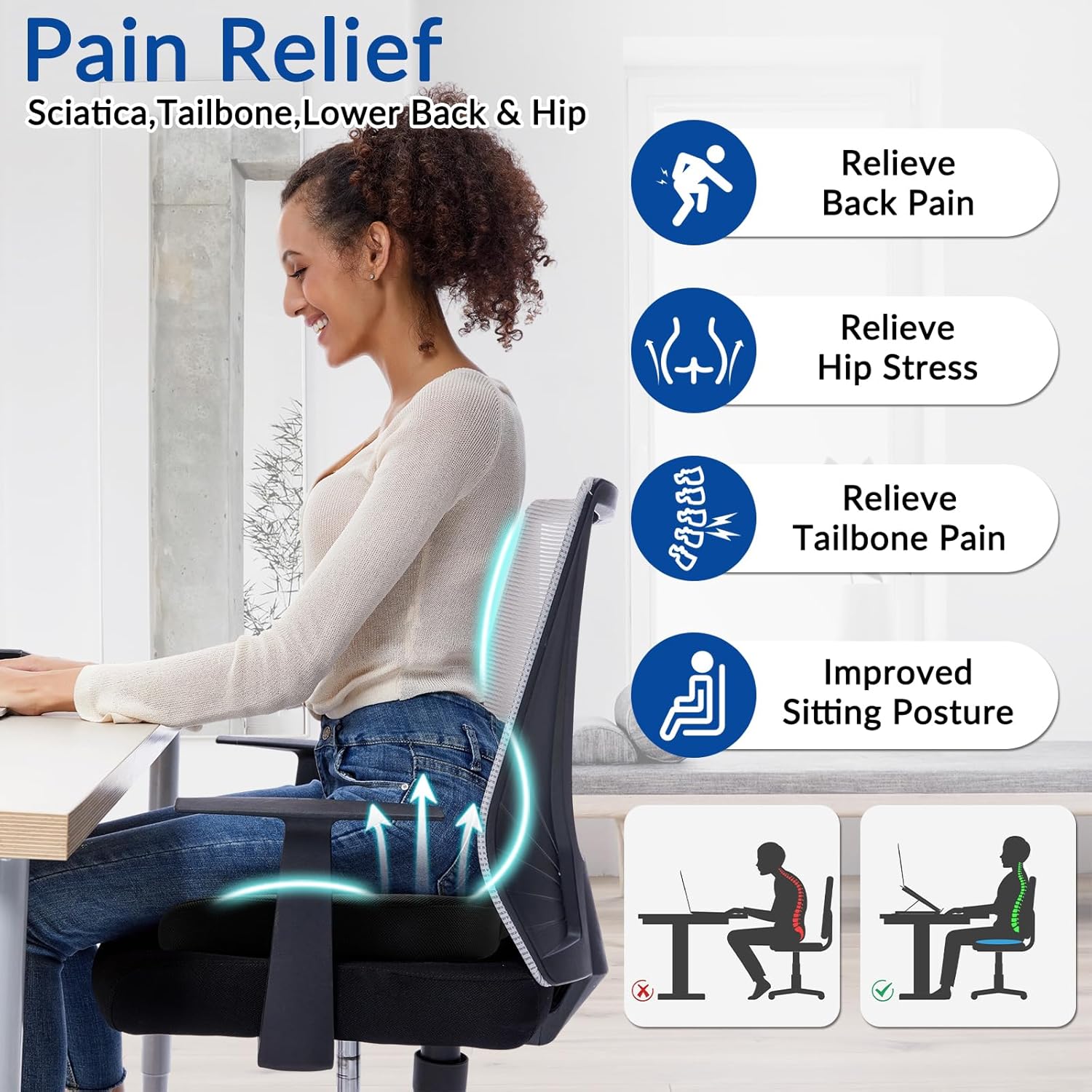 - Helps Relieve Lower Back & Coccyx Pain: The contoured design helps alleviate discomfort from the lower back, sciatica, and hip areas. Ideal for people with sedentary lifestyles, it improves daily comfort and helps minimize pain from extended sitting.