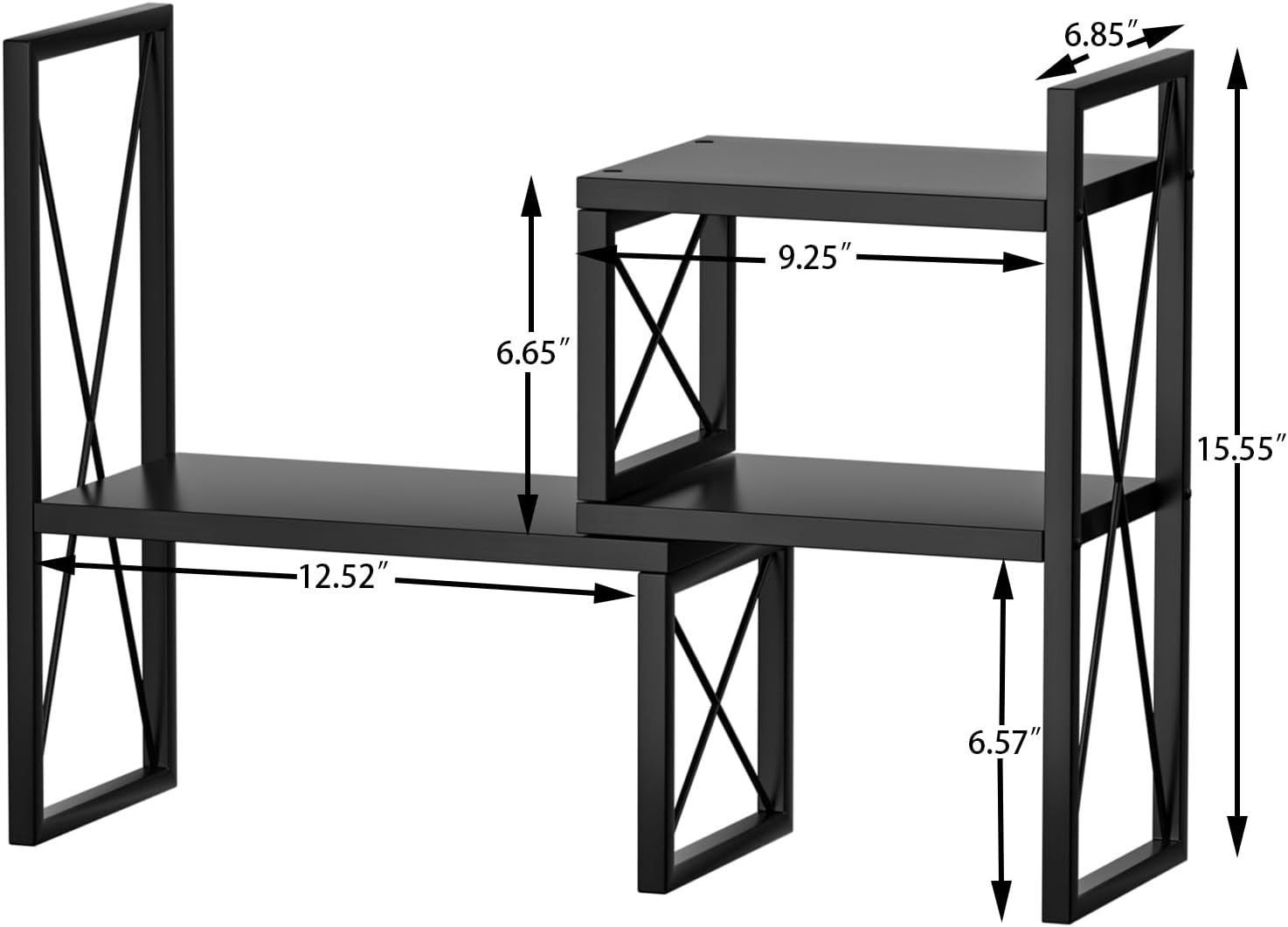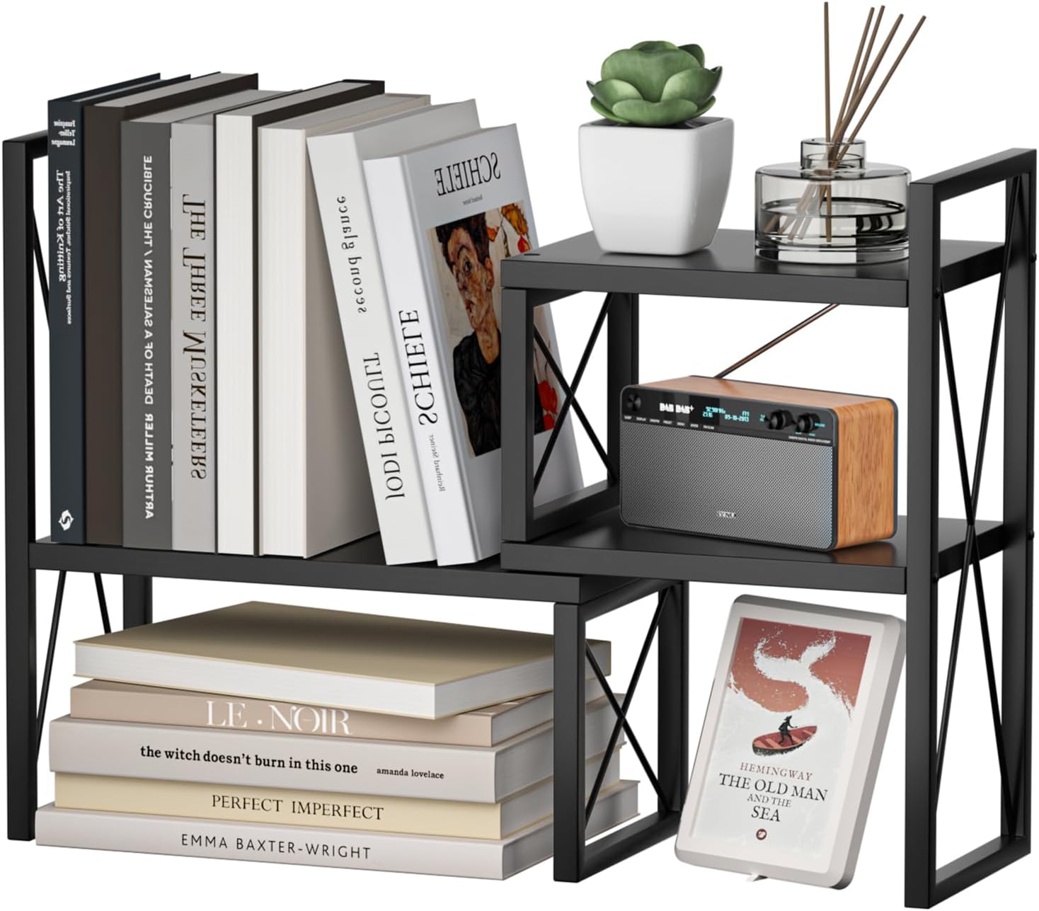 - The Sturdy Desktop Organizer:The'X'design desktop bookshelf is constructed from high-strength metal and solid wood, with load-bearing capacity of up to 42 lbs.It is not only for storage but also serves as decoration.