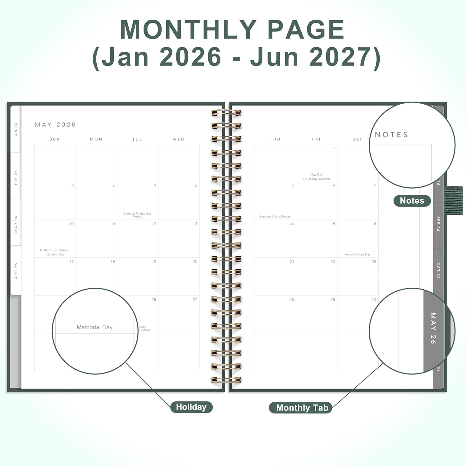- 18-MONTH MONTHLY PLANNER: This 18-month monthly calendar planner (8.5" X 11"), covering from January 2026 to June 2027, has monthly & weekly planning pages for long-term planning.