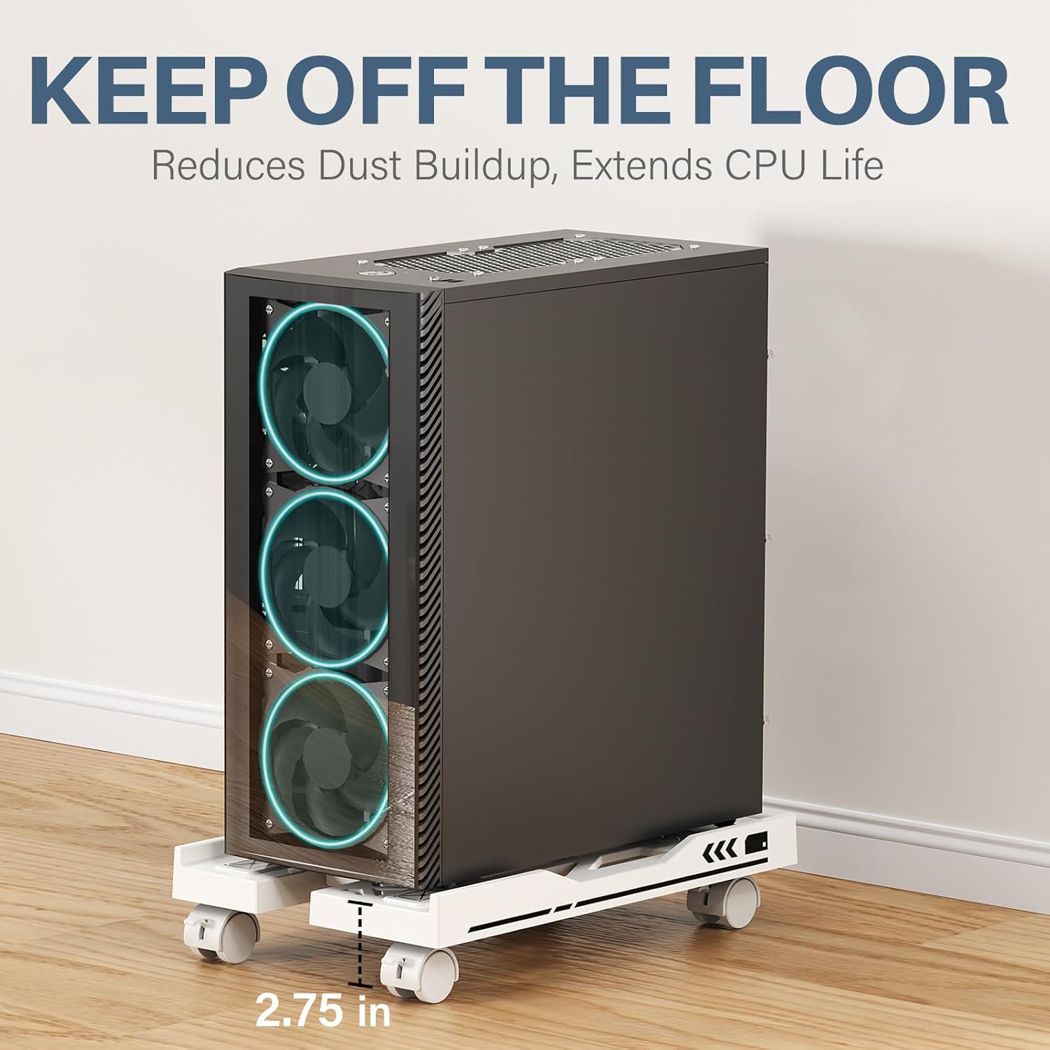 - Ventilation and Cooling: pc tower stand with wheels and holes at the bottom to keep the tower off the ground, enhance the cooling at the bottom and around to keep it clean and ventilated, greatly protects your computer tower
