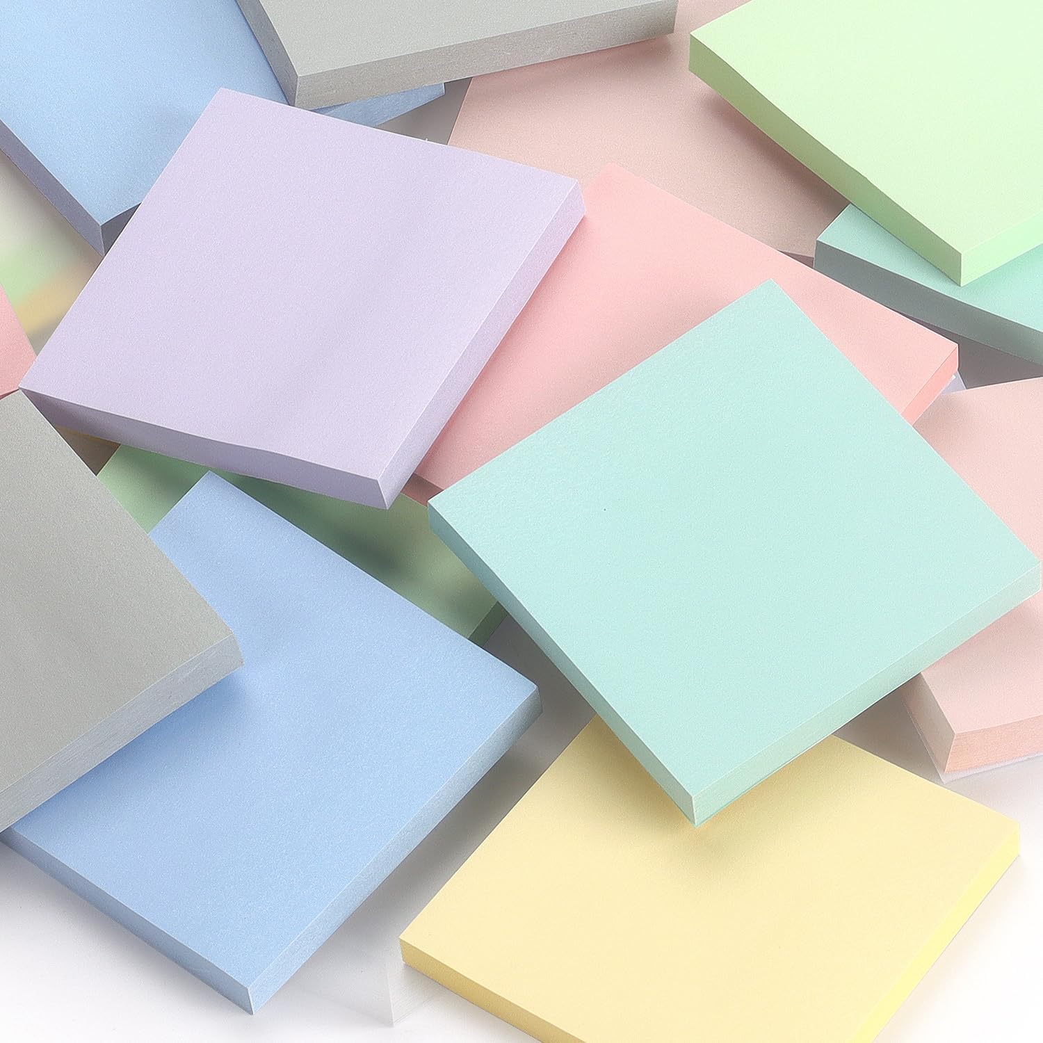 Sticky Notes 3x3 Inch, 8 Pads Light Colors Self-Adhesive, 8 Assorted Pastel Colors, 80 Sheets/Pad, Reusable Notepads for Office, School, and Home
