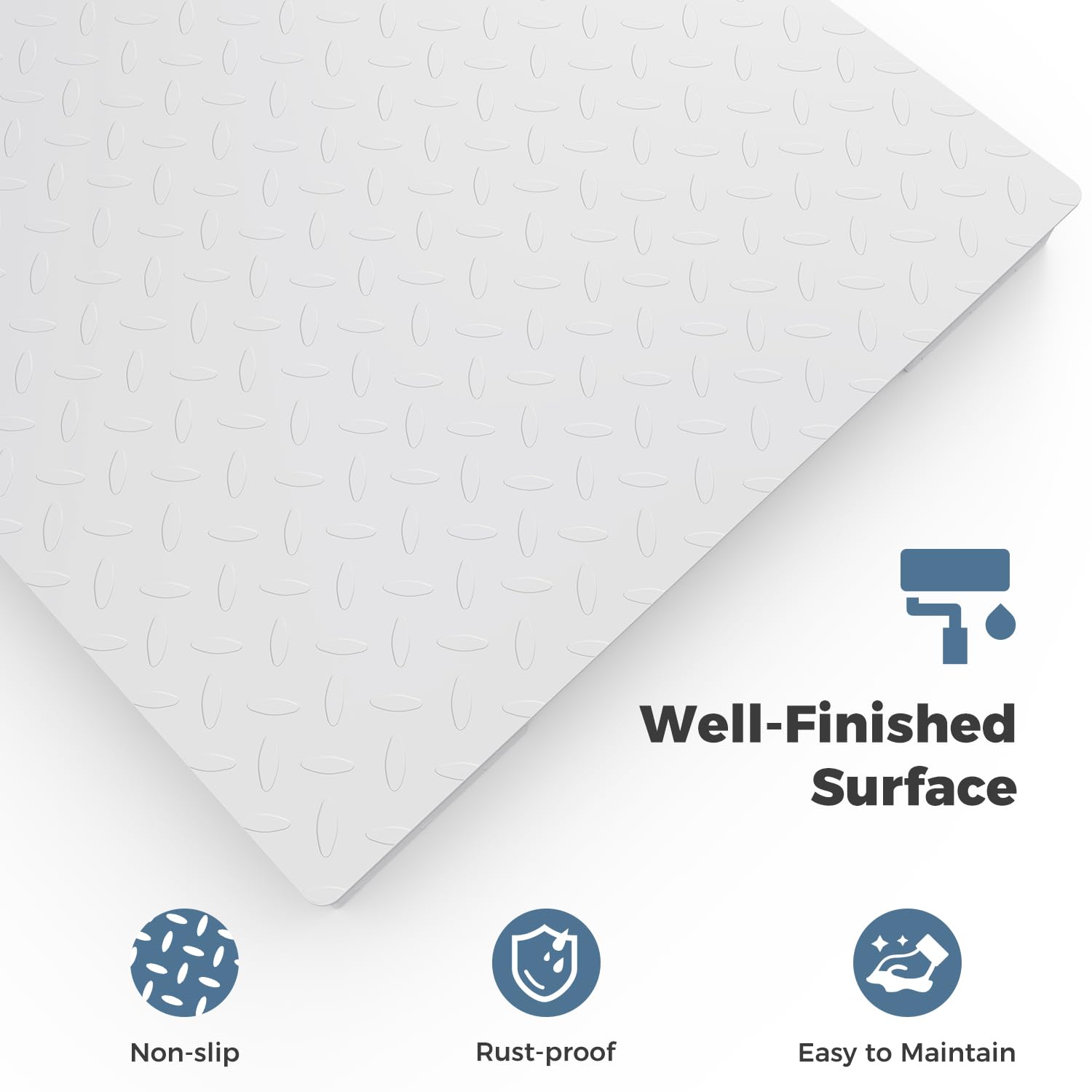 - 24" x 24"Carbon Steel Floor Scale: This sturdy floor scale is built with a channel steel frame for remarkable stability. The diamond-pattern surface keeps items securely in place during weighing, and its good finish keeps the scale from wear and rust. Featuring four adjustable rubber feet, this scale can be easily calibrated to accommodate various flooring conditions. The integrated weighing sensors are fortified from debris and rodents into.