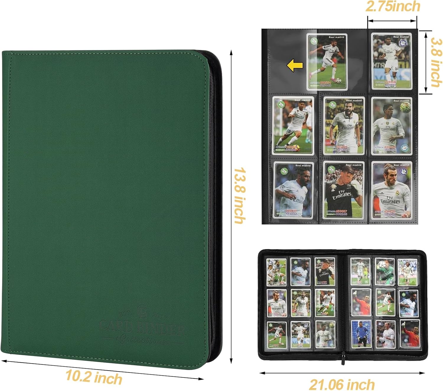 9 Pockets Card Binder,Premium Zip Trading Card Binder,540 Double Sided Pocket PU Collection Binder, Collector Album, Card Folder for MTG, TCG, Business Cards.(Blackish Green)