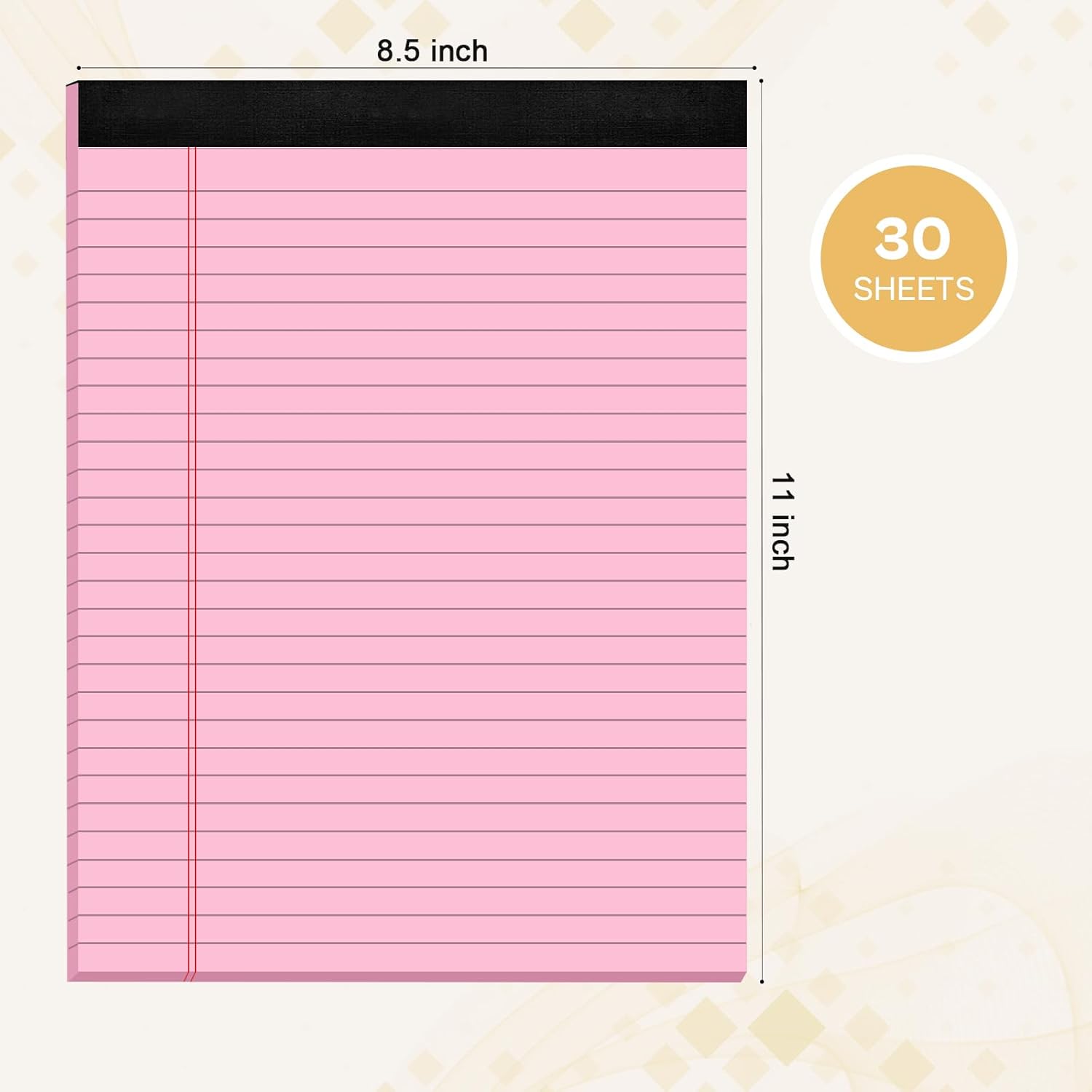 - 12-Pack Set: Each package contains 12 pink wide-ruled legal pads (8.5" x 11") with 30 sheets per pad, delivering a total of 360 pages. Ideal for note-taking, to-do lists, and all writing needs at home, school, or office