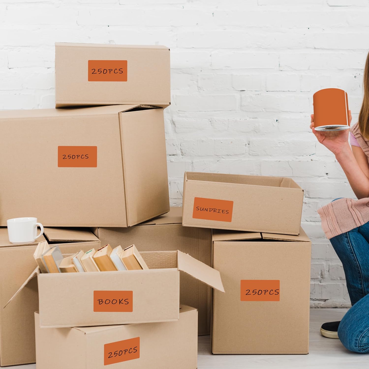 3 x 5 Inch 250Pcs Rectangle Color Coding Stickers,Strong Adhesion Easy to Write Label for Moving,Box Organization,Inventory,Business,Tan