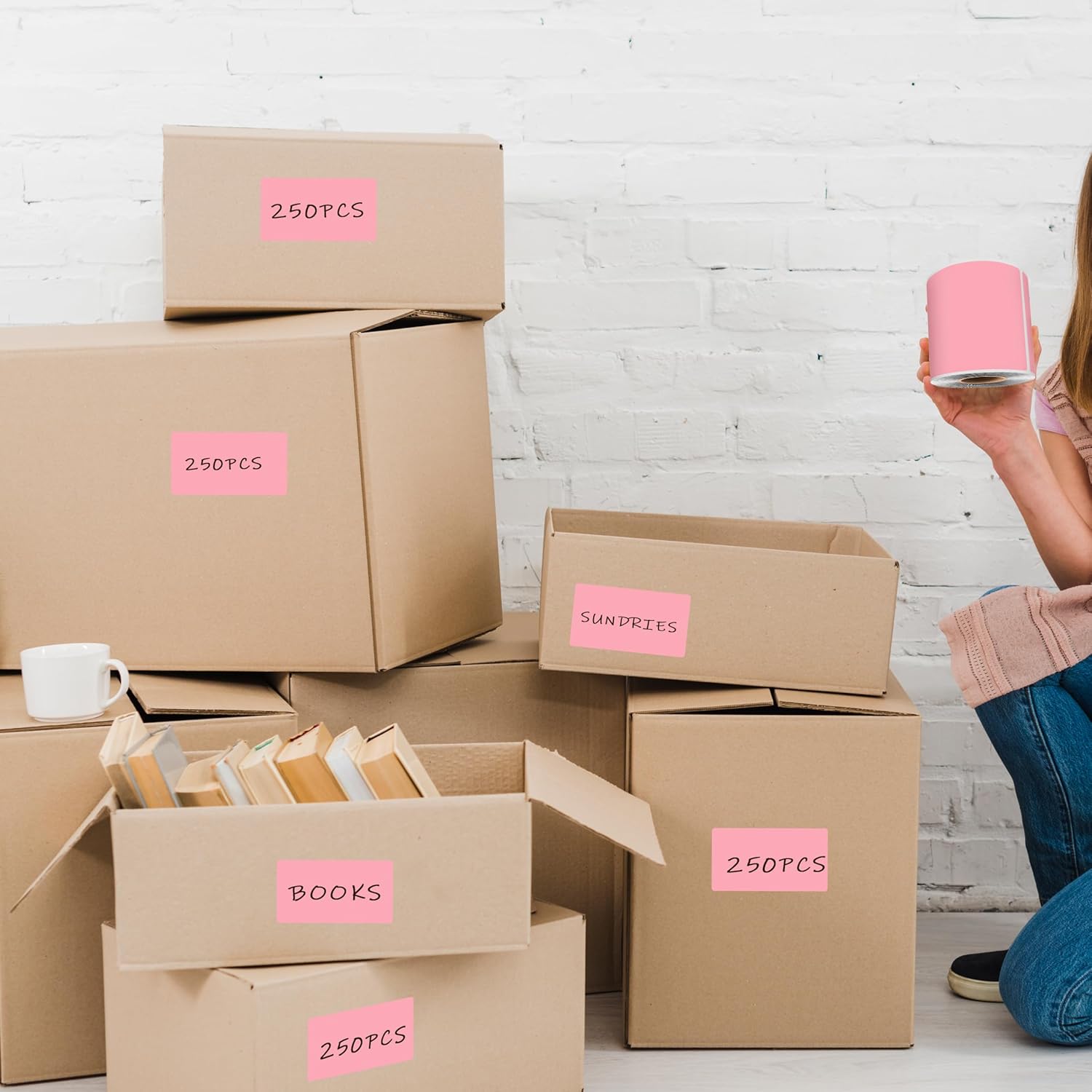 3 x 5 Inch 250Pcs Rectangle Color Coding Stickers,Strong Adhesion, Easy to Write Label for Organization,Inventory,Business Labeling,Pink