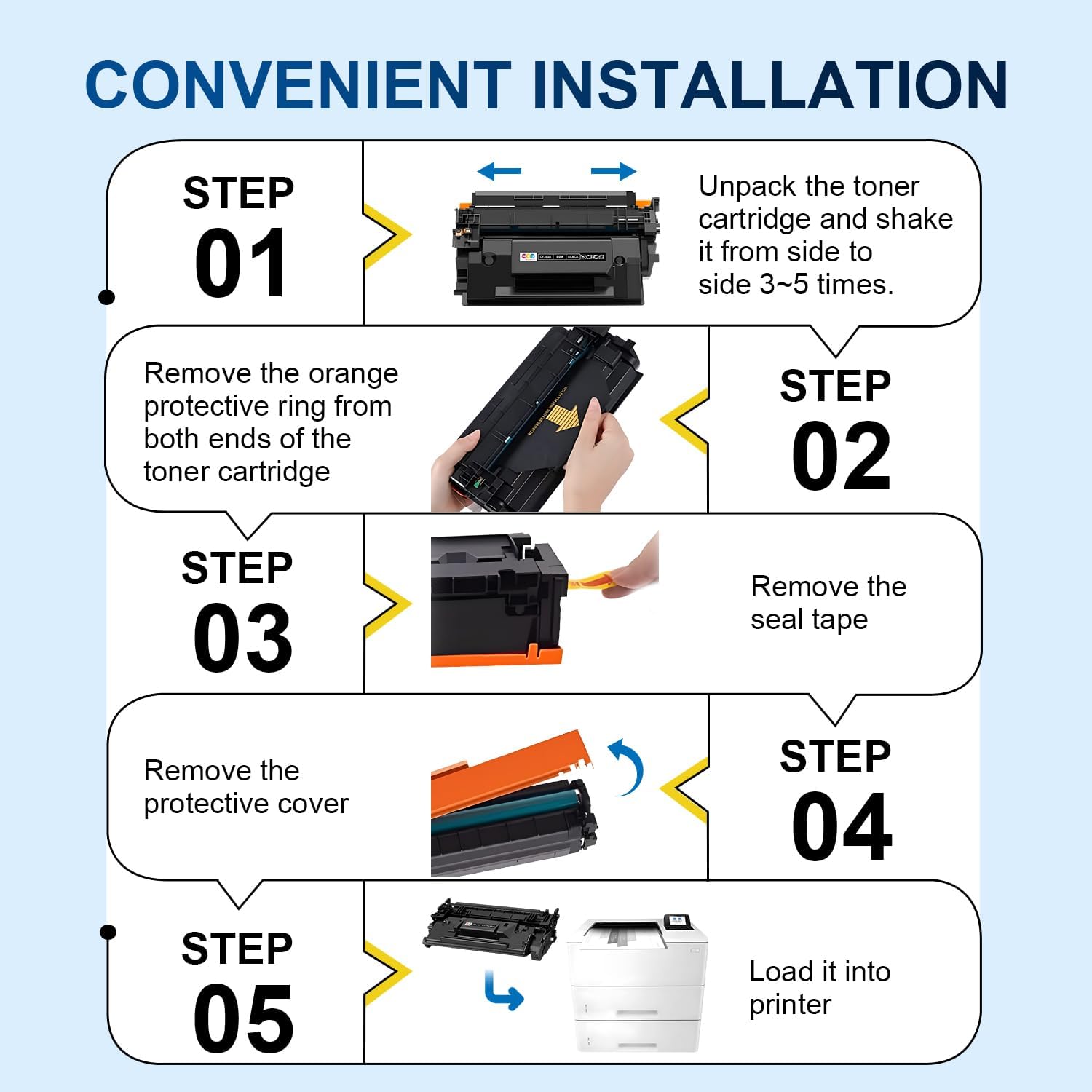 - Upgraded Chip: 89A black toner cartridges adopted the latest upgraded chip that can be recognized by the printer immediately and with perfect compatibility
