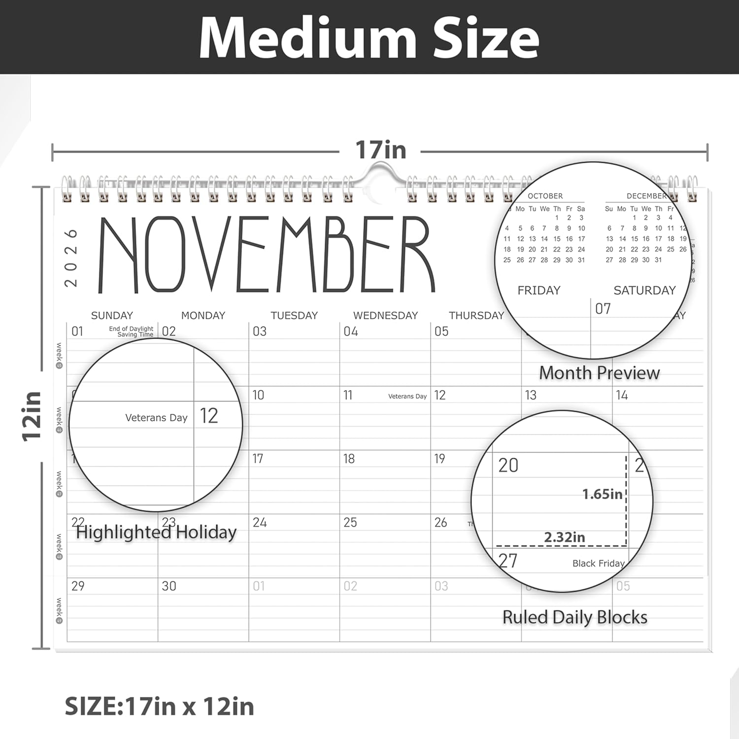 - Large Format, Easy to Read:Sized at 17" x 12", this large desk calendar offers big daily blocks for writing appointments,or to-dos. Each date block includes underlines for neat notes, helping you stay tidy and focused—great for professionals, parents, and anyone needing visual space
