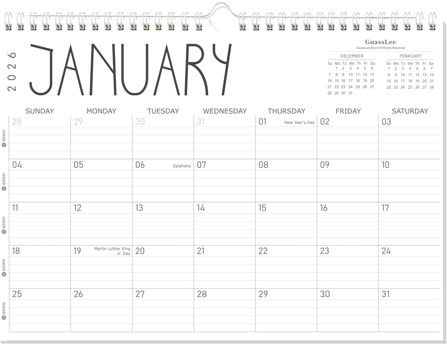 - Exclusive Weekly Number Feature:Unlike standard calendars, this 17" X 12" Paper Monthly Planner includes weekly numbers on the side of each page—making it perfect for weekly goal-setting and progress tracking. Especially handy for planners, teachers, and busy professionals