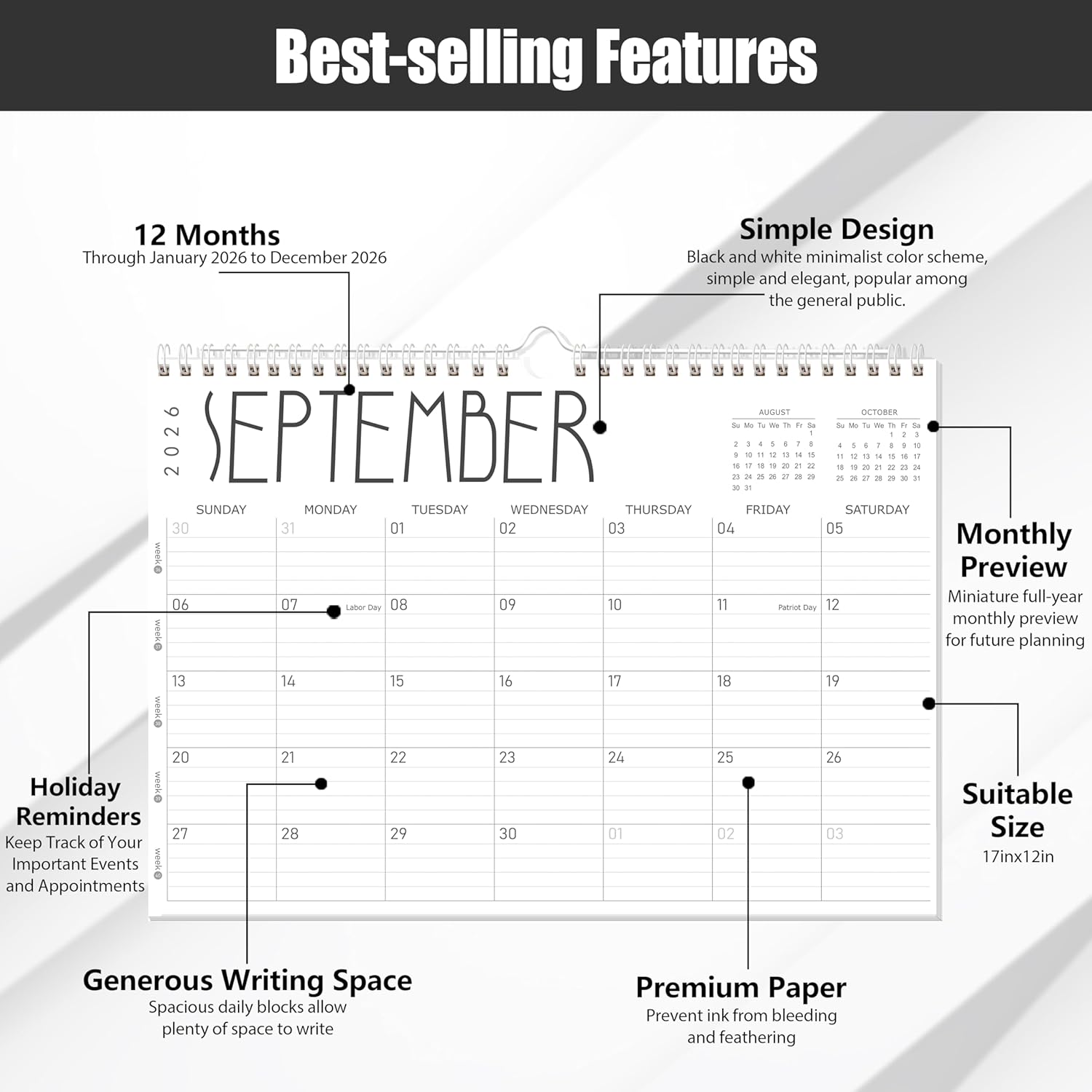 - Sturdy Coil Binding & Hanging Ring:Built with metal twin-wire binding and a durable hanging hook, this 12-month hanging calendar offers reliable support whether placed on a wall or desktop. It’s a great fit for your office, classroom, or home—wherever you need wall calendar 2026 style organization