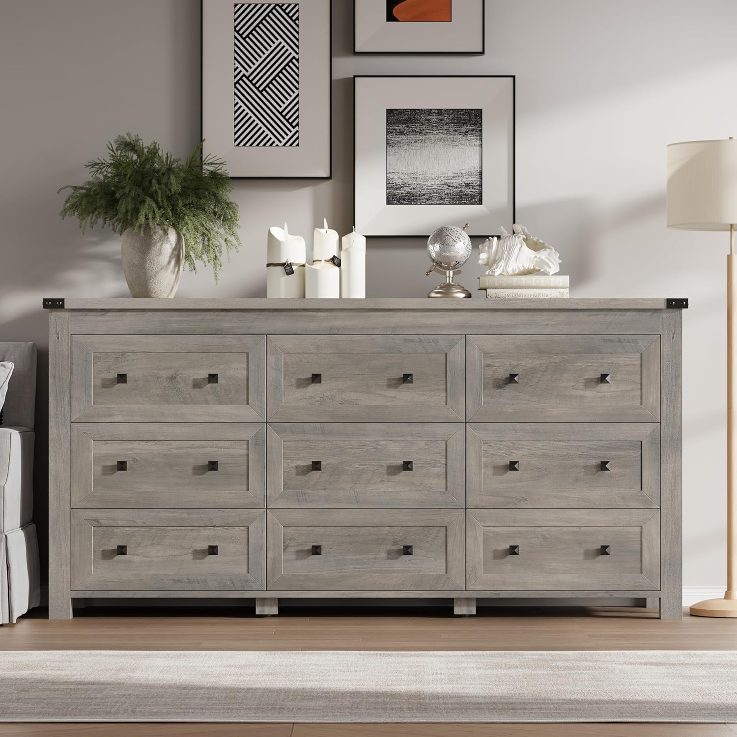 - Elegant & Modern Design: Featuring a sleek and contemporary design, BORNOON 9-drawer dresser seamlessly blends into any room décor. Its symmetrical layout ensures an aesthetically pleasing look while offering enhanced storage capacity. Ideal for bedrooms, living rooms, and hallways, it adds a touch of sophistication to any setting.