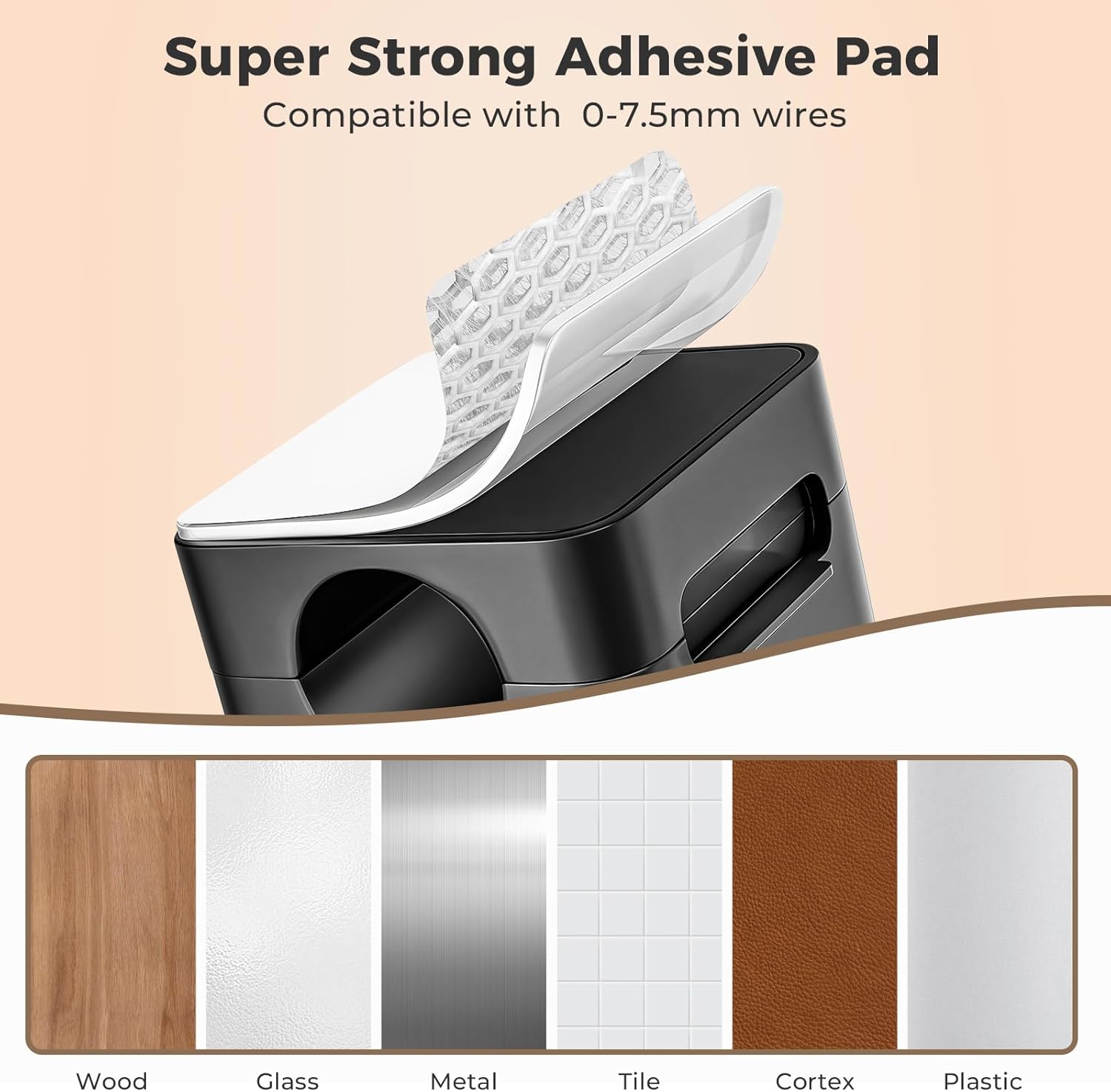 - SECURE ADHESIVE: Strong self-adhesive backing keeps cables firmly in place on desks, walls, or any flat surface while remaining removable.