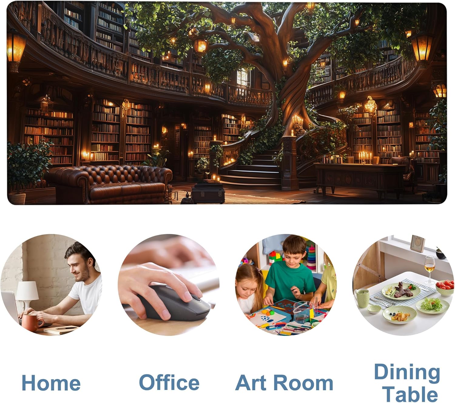 Large Mouse Pad Old Library Gaming Desk Pad Computer Keyboard Non-Slip Waterproof Mouse Mat with Rubber Base and Stitched Edges Entertainment Office Writing Desk Mat 35.4 x 15.7 Inches