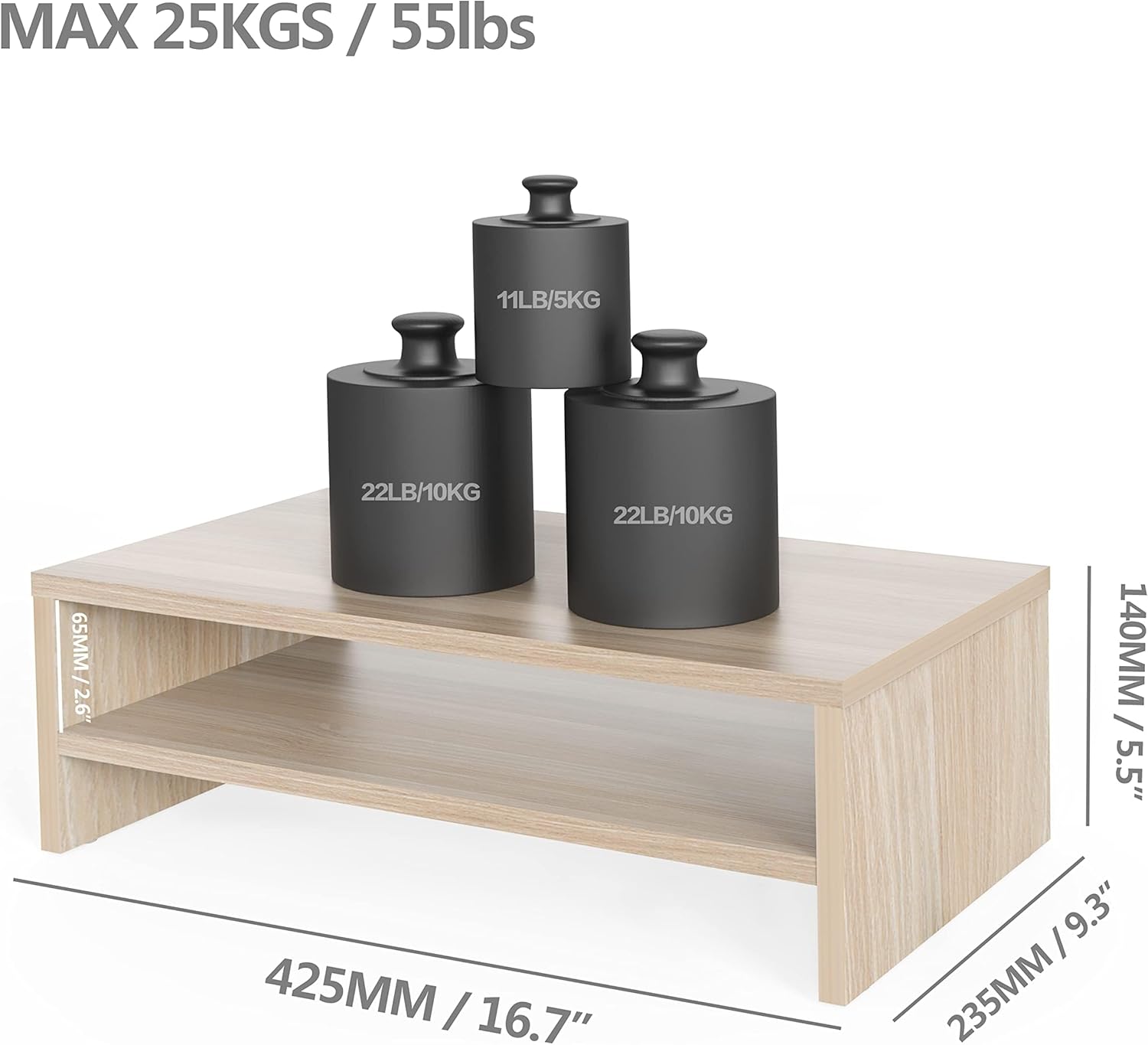 FITUEYES Monitor Stand - 2 Tier Computer Monitor Riser Shelf, Wood Desktop Stand for Laptop Computer Screen, Desk Organization, Office Supplies