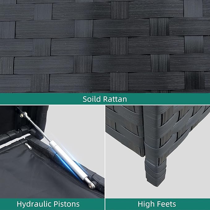 - Enhanced Structural Stability: Built with advanced PE rattan, our design stays strong and keeps its shape even in high temperatures, avoiding the bulging sides you often see in resin deck boxes.