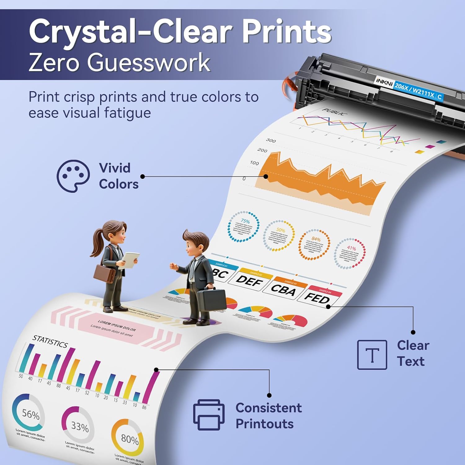 - [Multi-Scenario Use] Compatible with HP 206x toner cartridges 4 pack high yield - boost productivity for office reports/contracts, deliver vibrant photos/files for home users, enhance school assignments for students.Simplify tasks for all