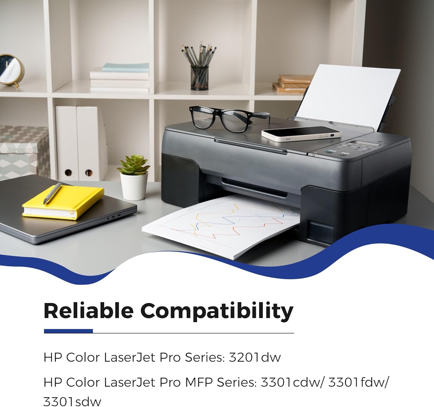 - Compatible Printers: Compatible with HP Color Laserjet Pro MFP 3201dw, Color Laserjet Pro MFP 3301fdw, Color Laserjet Pro 3301cdw, Color Laserjet Pro 3301sdw Printer.