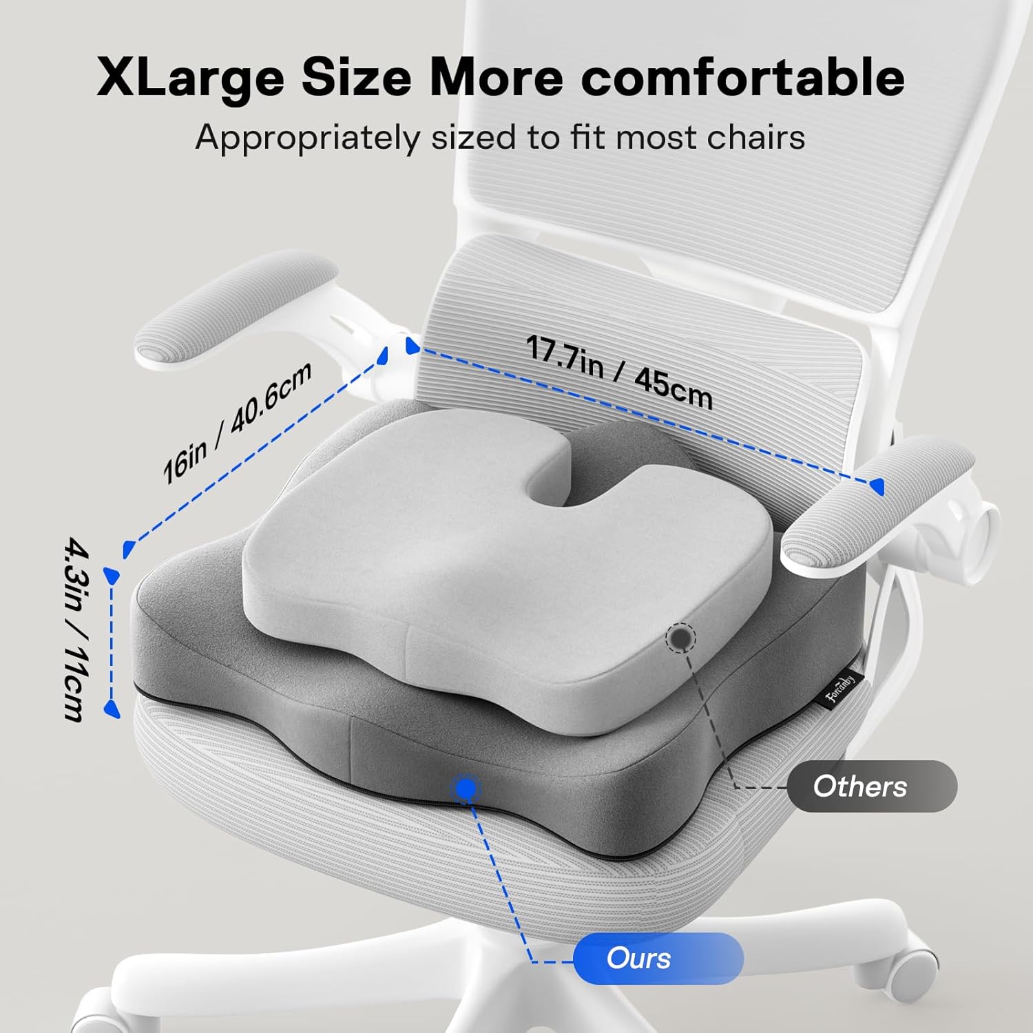 - 【Widely Practical】At 18.1"×16.5"×4.3"/2.36", this pressure relief seat cushion fits office chairs, car seats, wheelchairs, and more. Use it as a coccyx cushion for tailbone pain, seat cushions for office chairs, or memory foam seat cushions for office chairs—all while enjoying the included travel-friendly storage bag.