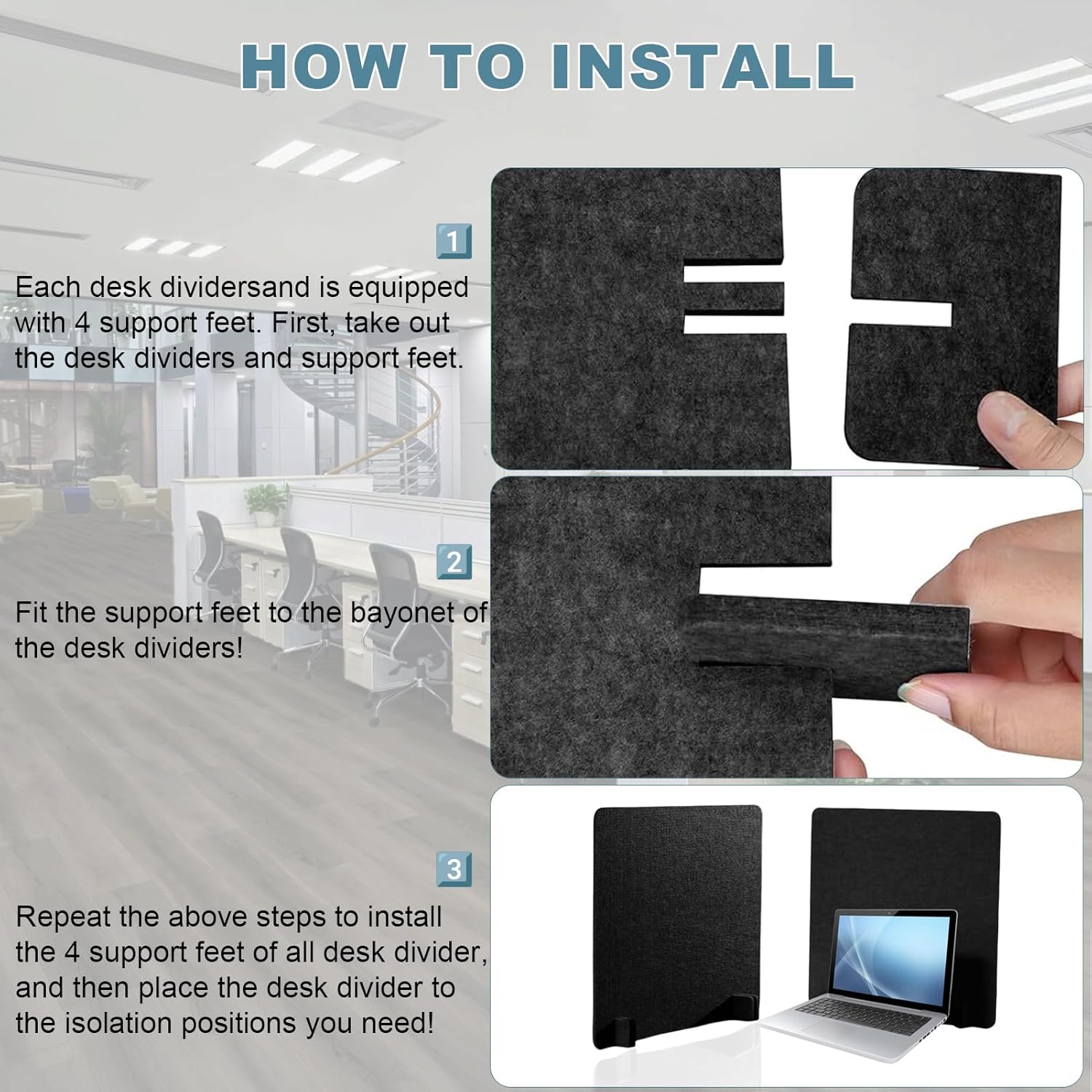 - 【Size Details】The desk divider measures 24 x 24 inches,about 0.35 inches thick. Advantages of our desk privacy panel: Our desk divider with 4 legs for solid support,lightweight,easy to move,easy to adjust and set up your workspace as needed.