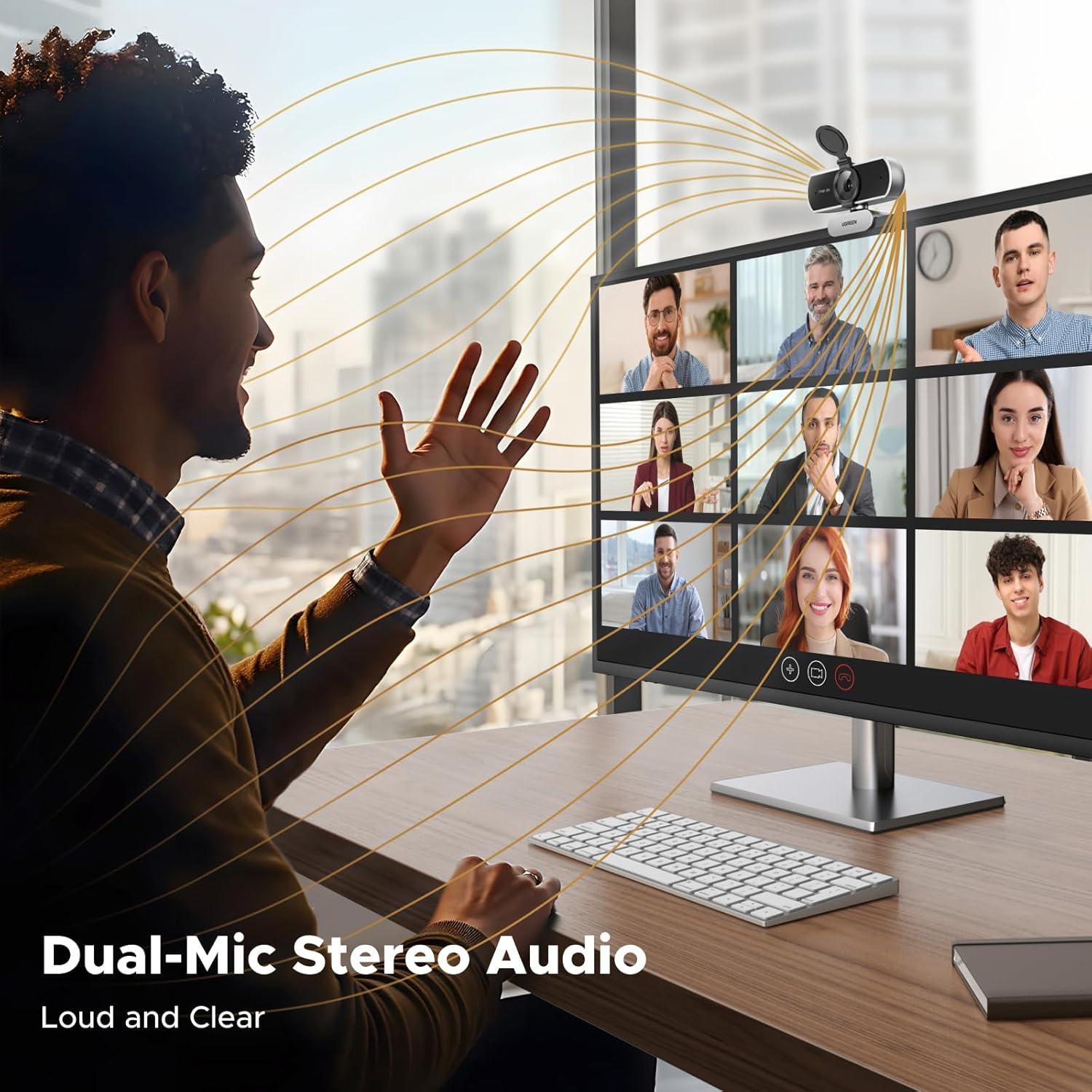 - Built-in Dual Microphones: UGREEN webcam featuring dual high-quality integrated microphones, captures sound clearly while minimizing background noise, ensuring your voice is heard distinctly during video calls and enhancing communication effectiveness