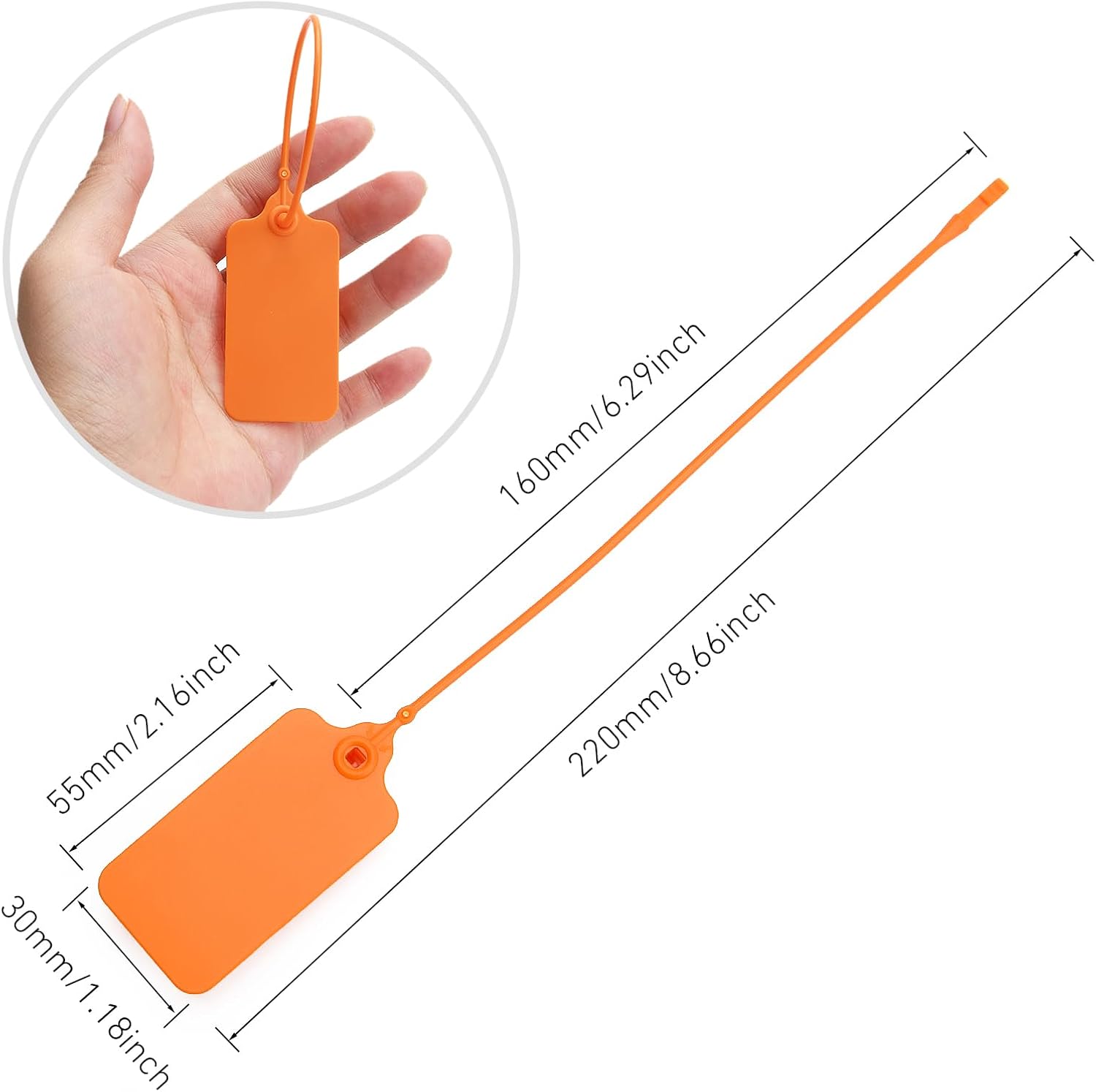 - Writable Tags: The blank platic seal tags can be written on with permanent markers to clearly identify assets. Package include: 50pcs orange tags and one permanent marking pen.