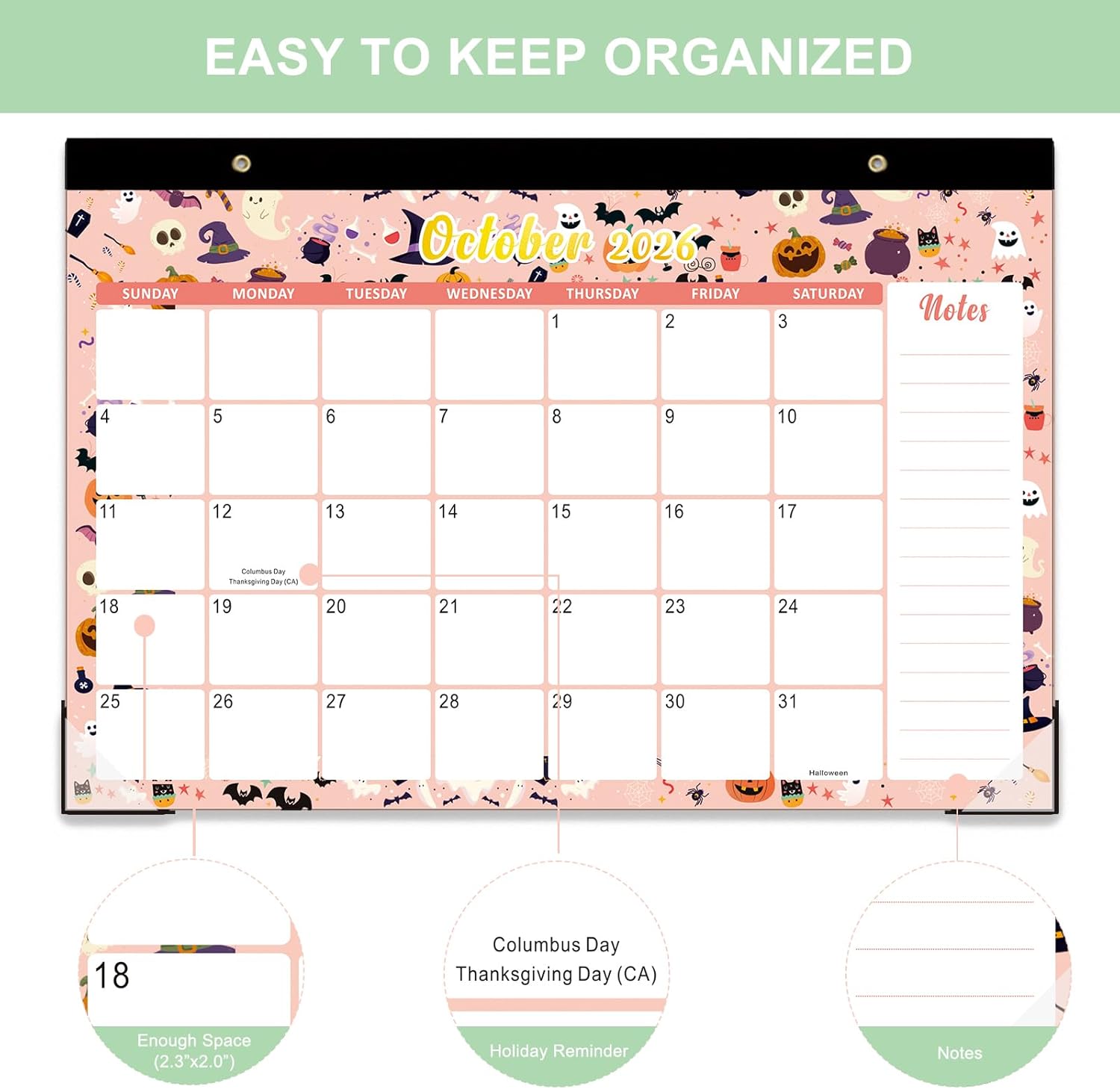 - DESK FORMAT: Standard desk calendar 2026-2027 layout with ample writing space and clear date visibility for easy daily planning and scheduling. 17 X 12 inches. Measures approximately 17 inches wide by 12 inches tall when displayed, perfect for standard desk spaces
