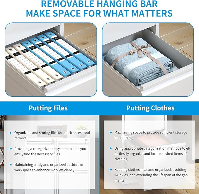 - 【Secure Locking System】This white file cabinet comes with one security lock and 2 keys, securing all your files. You can lock all the drawers at the same time, ensuring confidential documents and valuables remain protected from unauthorized access.Engineered with an anti-tilting mechanism, this narrow file cabinet allows only one drawer open at a time.The interlocking system enhances stability.