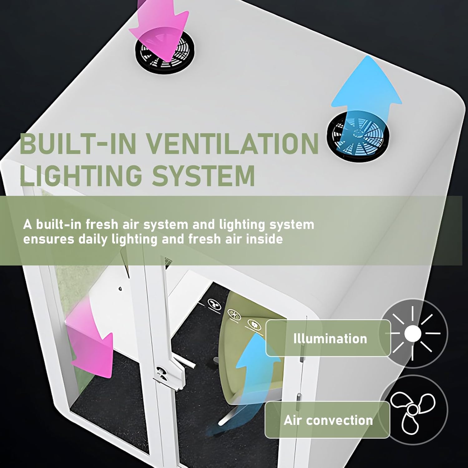 Office Sound Booth with Audio Privacy - Removable Soundproof Booth with Green with Arc Border Design,Soundproof Room with Light,Fans, Socket for Study,Live Broadcast Room (59IN)