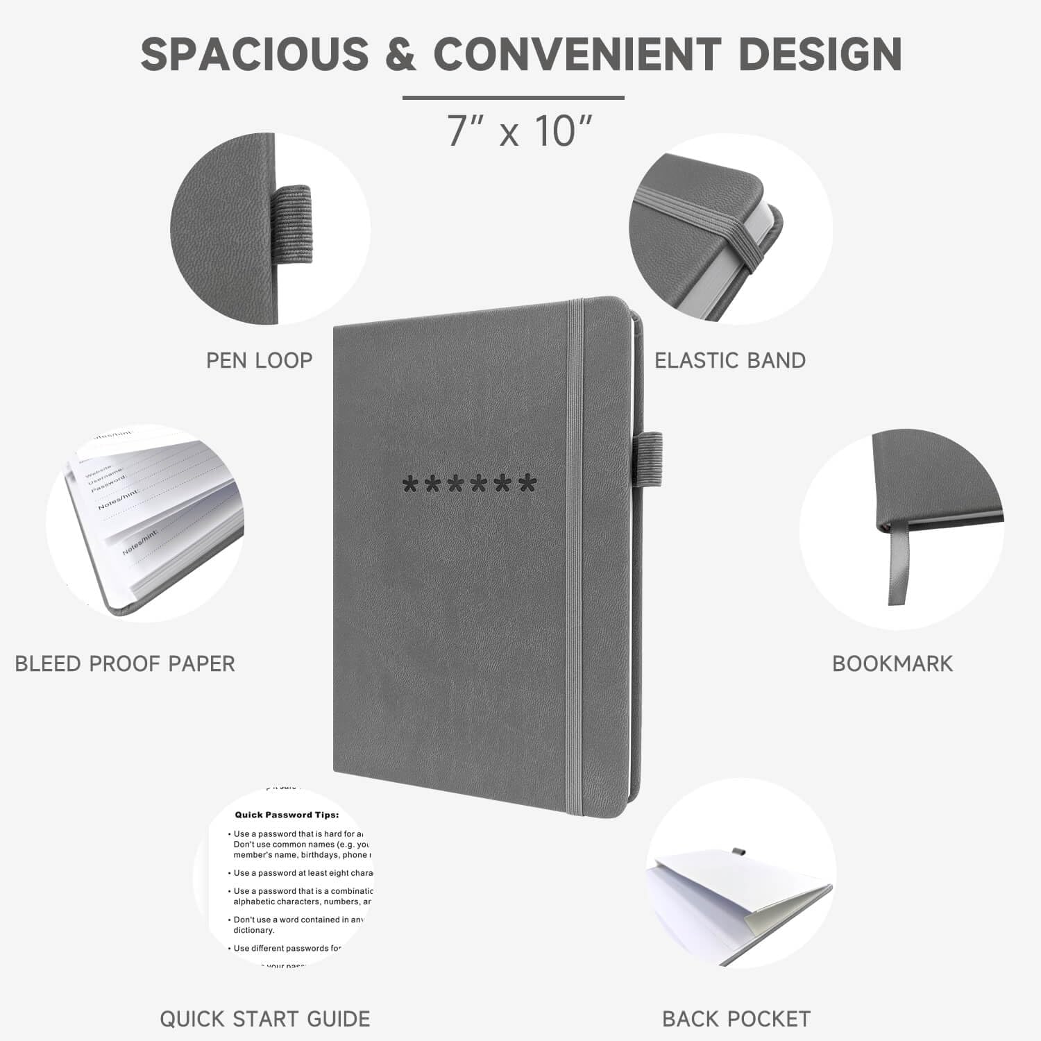- Premium Quality - TUPARU password notebook's hardcover is made of high-quality leatherette material which looks really beautiful on the outside. And this internet address book comes with an accordion back pocket, one ribbon bookmark, a pen holder, and an elastic band.