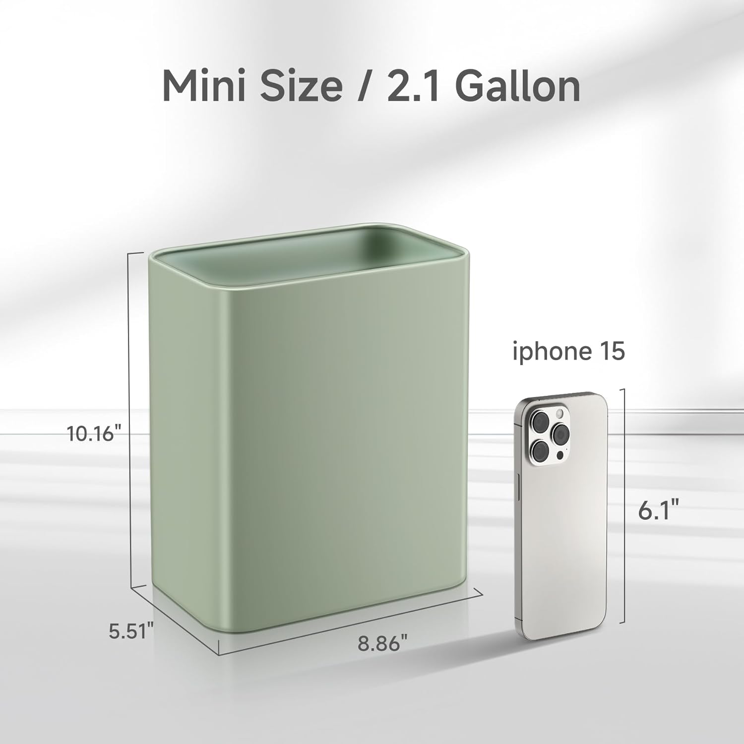 - 【Mini Size for Narrow Spaces】The compact design of this 8L trash bin makes it fit well in bathrooms, on the table, under sinks or wherever space is limited