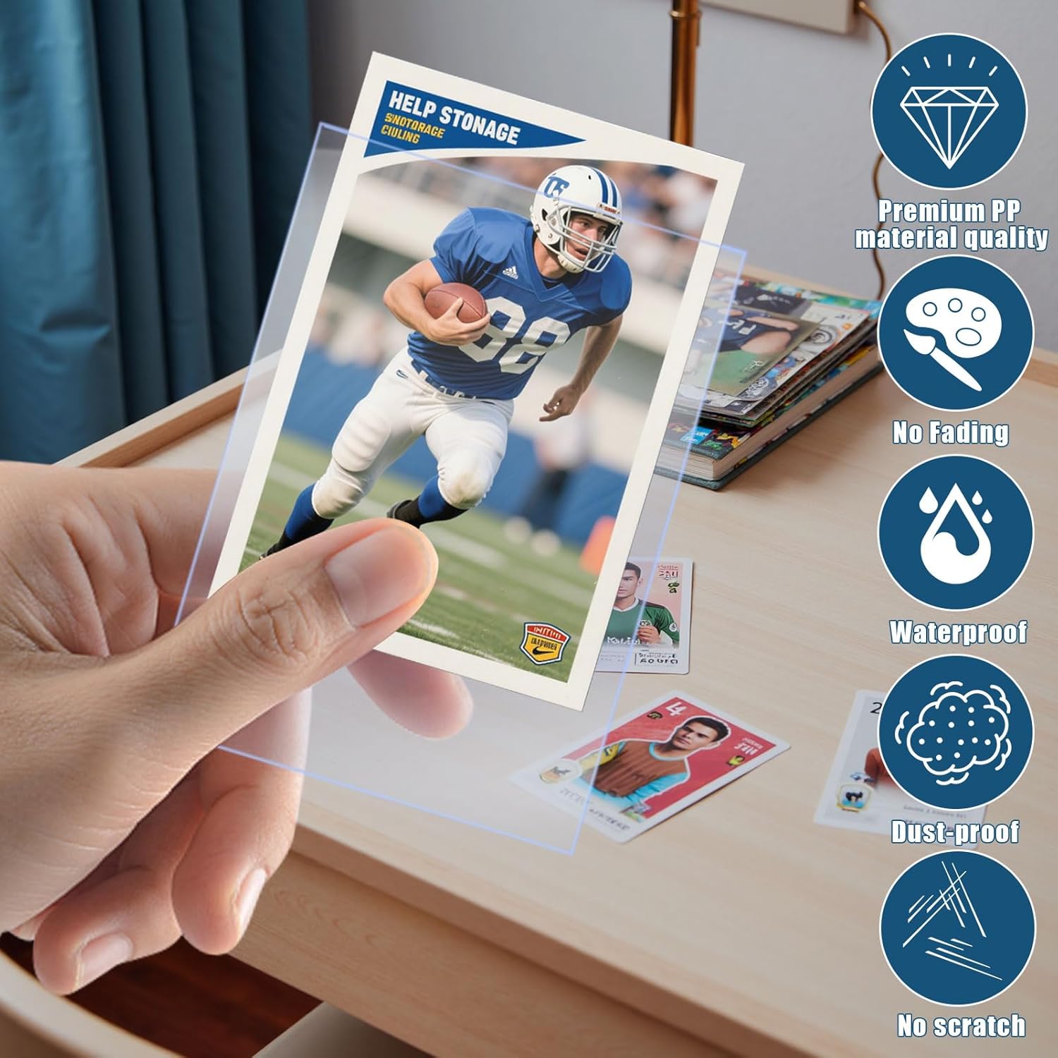 - STANDARD SIZE: Measuring 2 5/8" x 3 5/8", these card protectors fit standard 2.5" x 3.5" trading cards. The card covers provide an extra layer of protection before inserting cards into top-loaders, and the smooth design enables easy sliding and storage, providing a universal solution for your different card types.