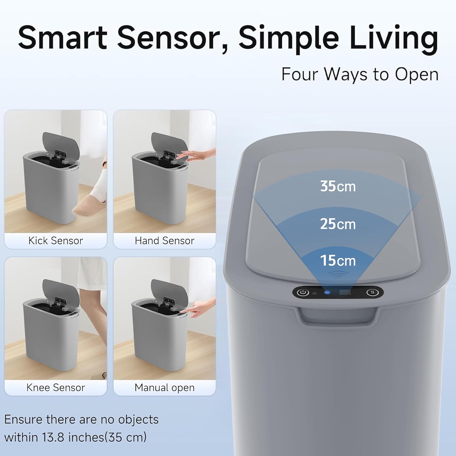 - 【Perfect for Narrow Spaces】The slim design of our smart trash can make it ideal for small spaces, fitting perfectly into corners and narrow areas in office, bedroom and bathroom, etc. Get it now to improve the space utilization!