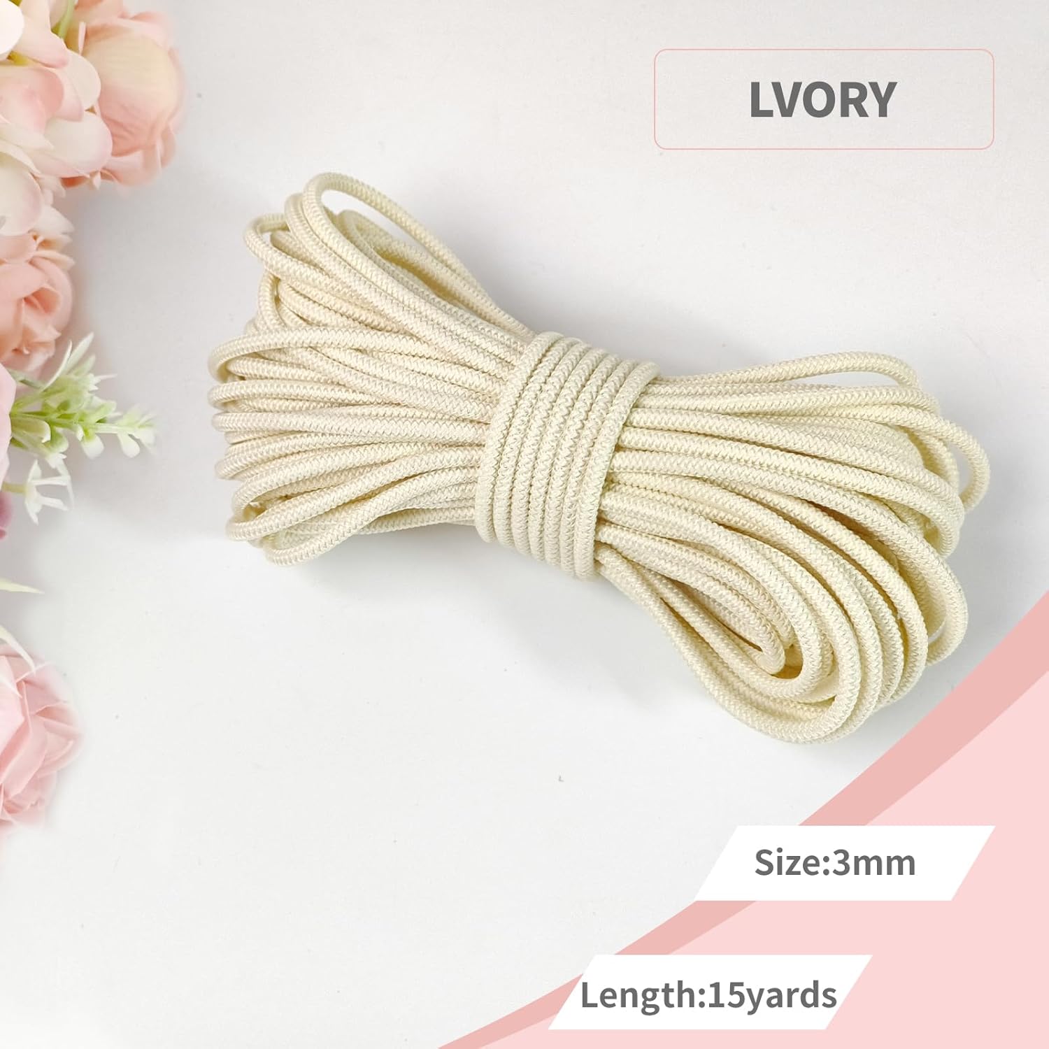 1/8 inch Non-Slip Elastic Band -3mm 15 Yards Soft Elastic Cord Stretch String Braided Thread for Sports Gear, DIY Crafts, Hair Bands, Shoelaces,Apparel Making & Camping Tie Down (Ivory)