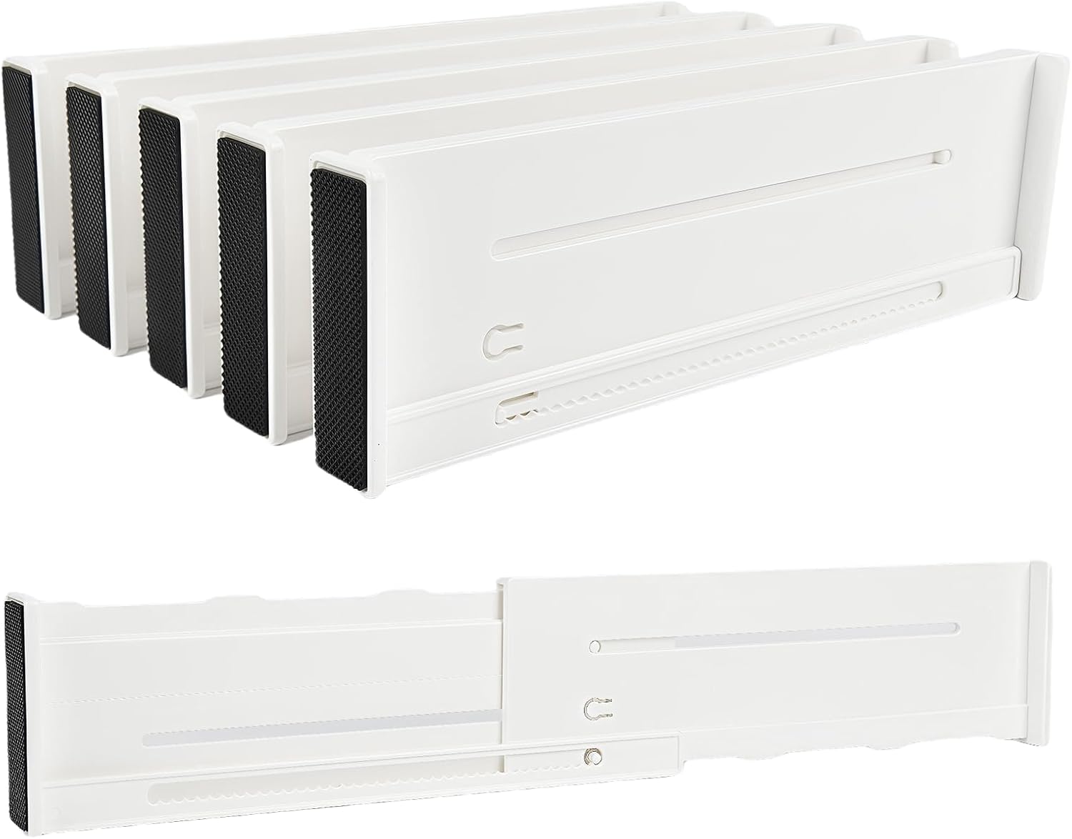 - 5-Pack Value Set for Max Storage: Optimize space with white dividers (10.6" base fits nightstands; 17.7" extends for pantries). Combine units as silverware trays, sock compartments, or gadget organizers—slim design maximizes shallow drawer storage!