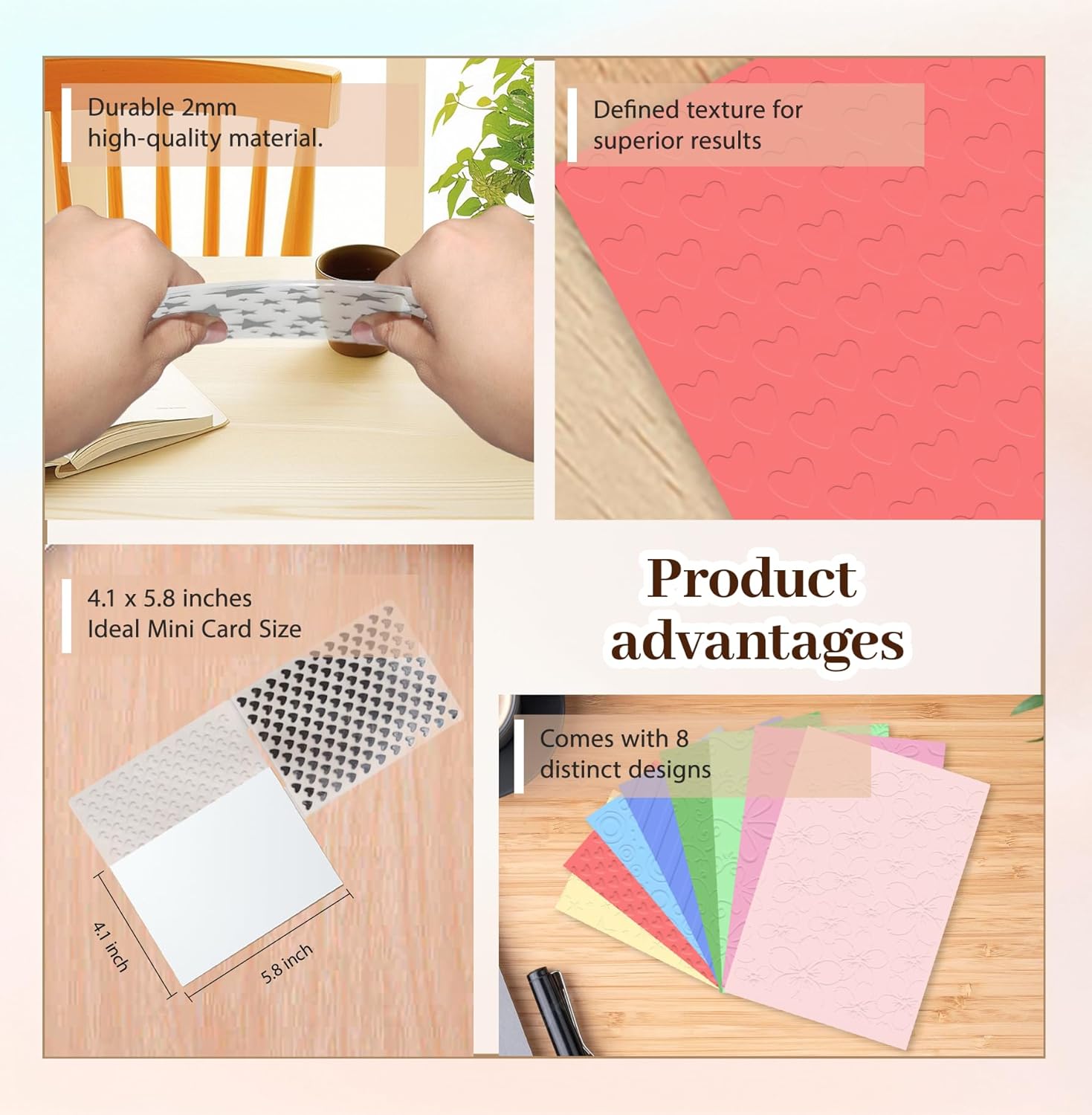 - Unlimited Creativity:Let your creativity flow! With 8 different patterns to choose from, these embossing folders allow you to easily create personalized cards, photo albums, home décor items, and more. Their convenient size and versatile design options ensure that every project you work on will have a professional touch, making it truly unique.