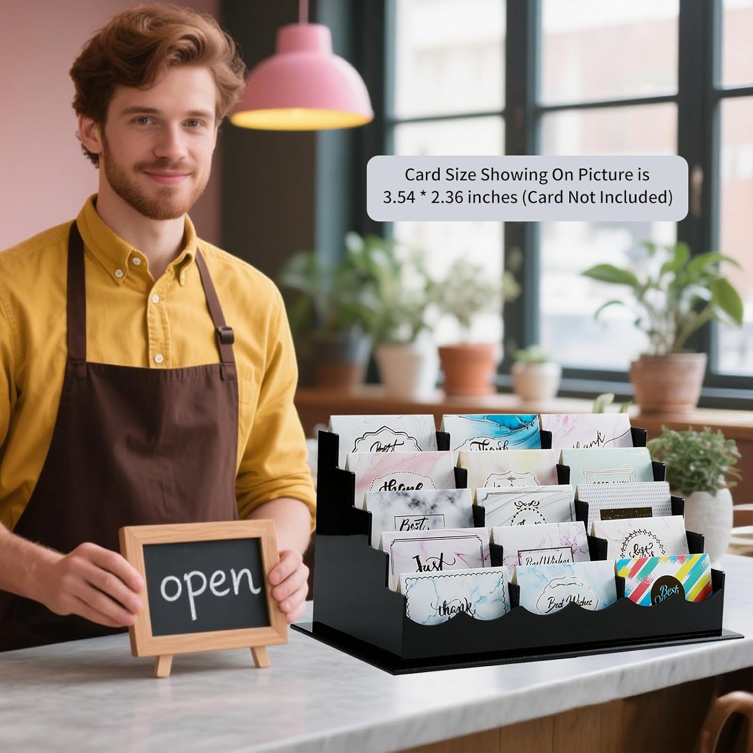 Business Acrylic Card Holder Display for Desk, 15 Slots 5 Tiers Multiple-Black Acrylic Business Card Stand Set, Holds Approximately 750 Cards